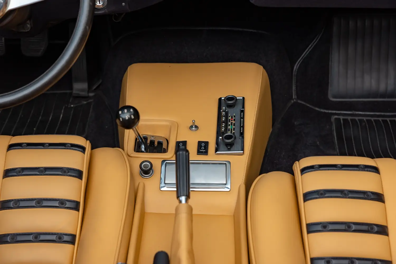 This Classiche certified car comes with the original leather owner’s pouch, handbooks, warranty book, Consumer Information booklet, and the original Manufacturer’s Statement of Origin. It also includes a complete leather tool roll, the original jack kit, rebuilt Borrani wire wheels with new XWX tires, and the original mags on new Dunlop tires.