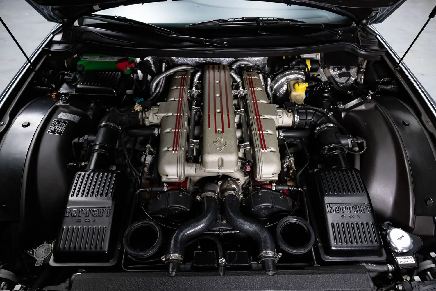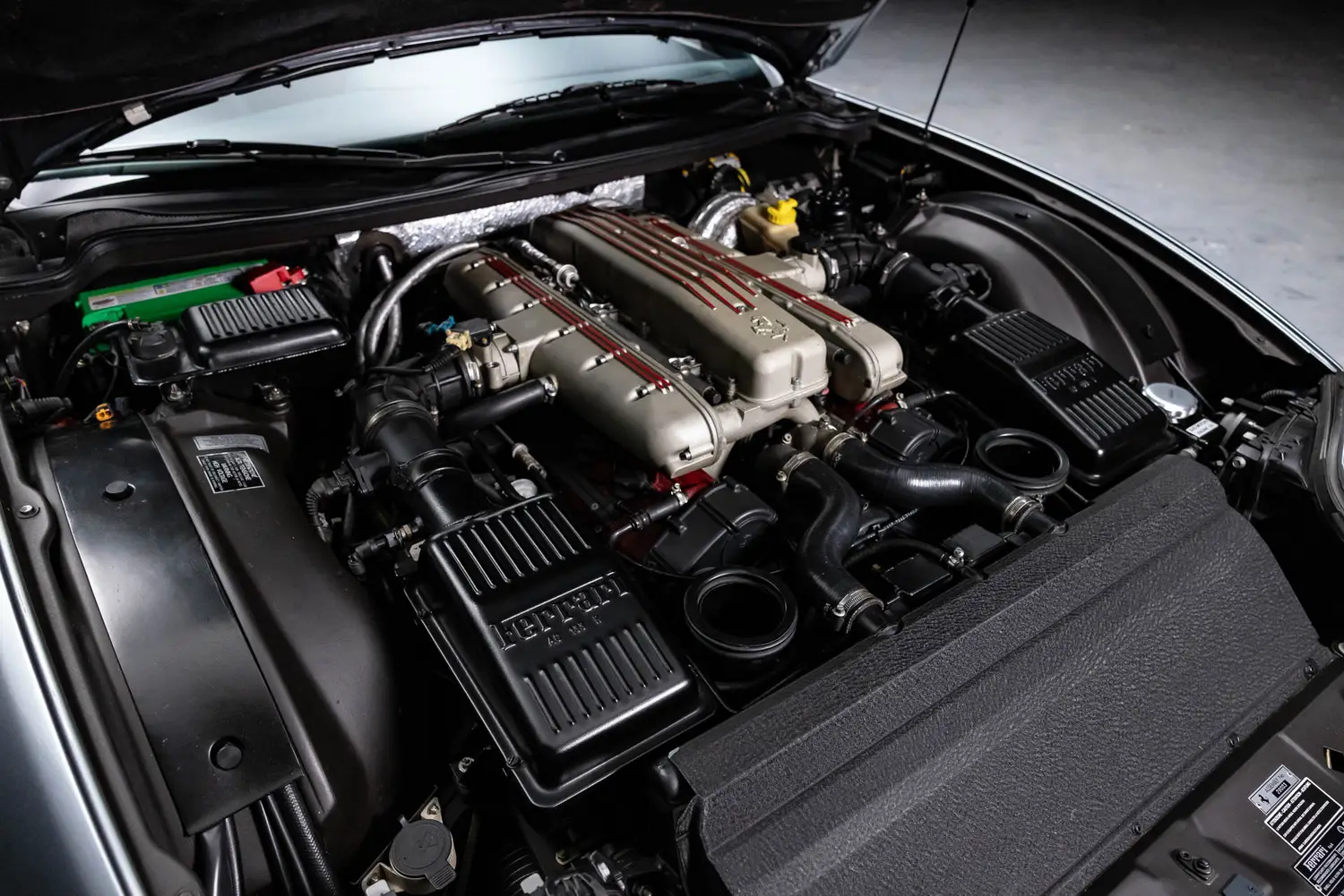 This car features just 24,000 miles on the odometer. This example is equipped with a Tubi exhaust, making for amazing sound through the 5.5L V12. Paired with the desirable gated 6-speed manual transmission, it offers the visceral driving experience Ferrari is known for.