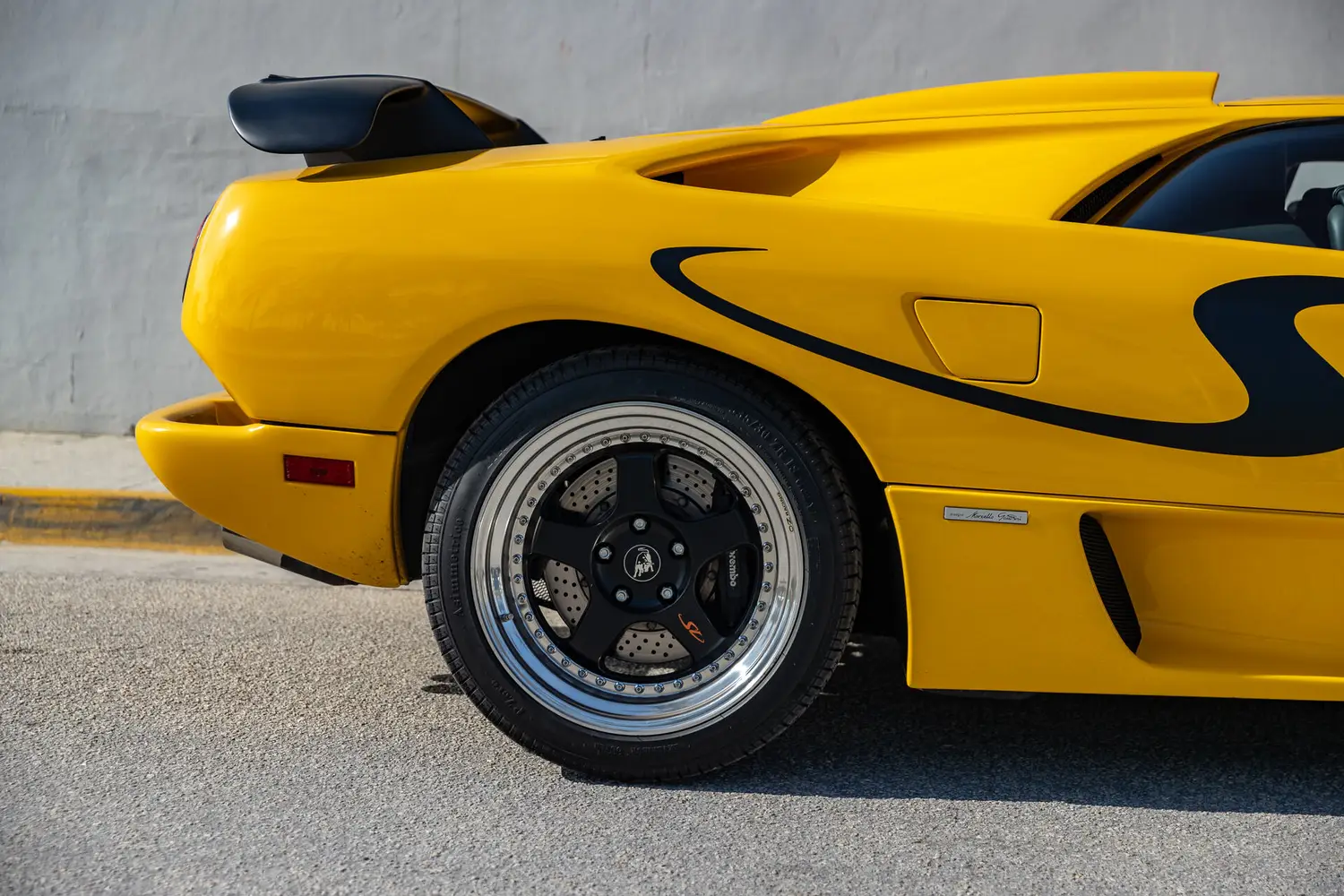 However, Lamborghini gave the SV an increase overall power from 485BHP on the first model to 510BHP which demands a strong hand at the wheel. To help maintain stability at high speeds, a large adjustable wing was added as standard equipment which could be color matched to the car or in raw carbon fiber, a few examples came with rear wing deleted.
