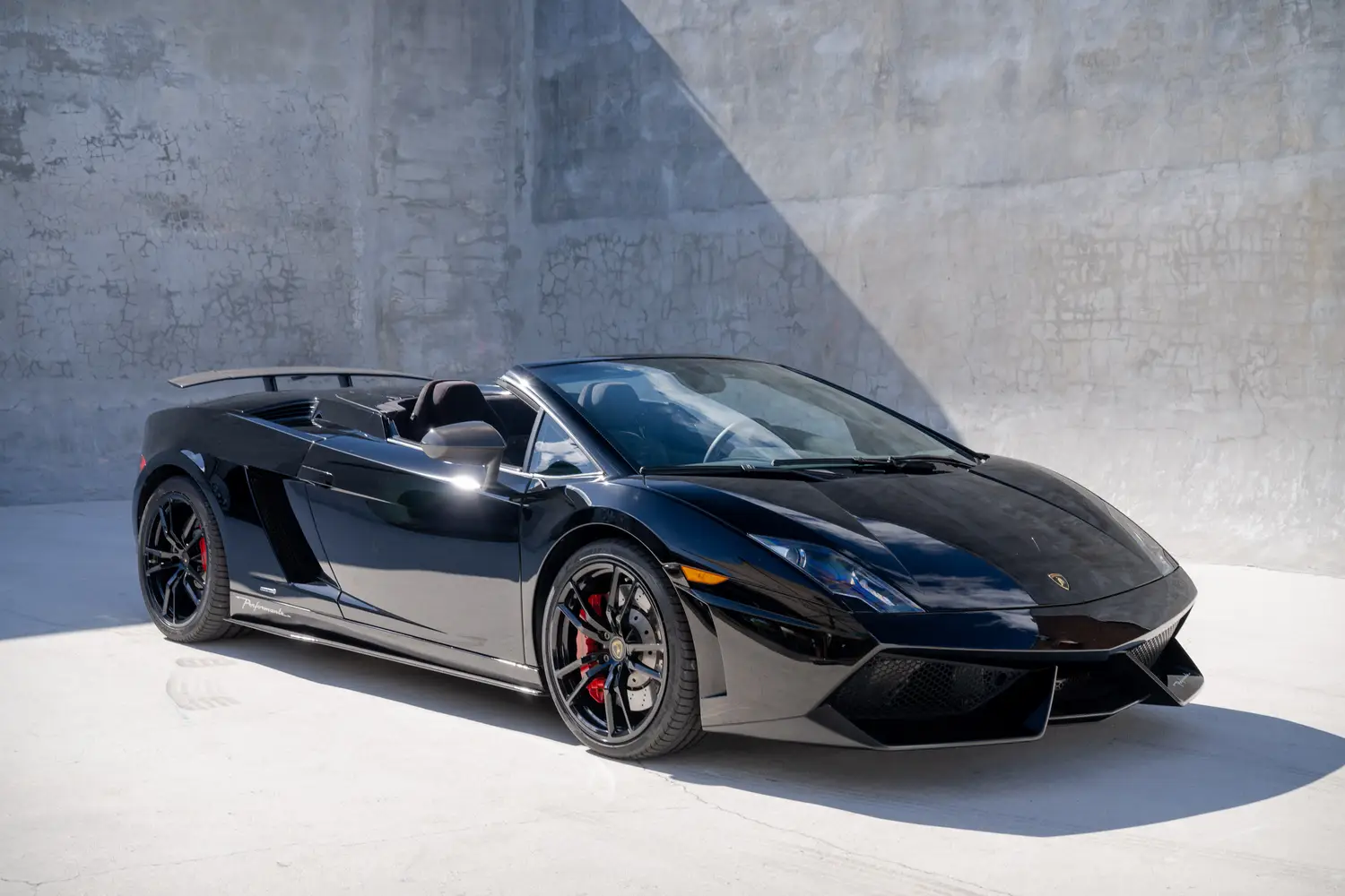 This Lamborghini Gallardo LP560-4 Spyder (#12658) is a U.S. version example in beautiful Nero Noctis (black) over Black Alcantara and only 13,188 miles. The convertible Gallardo Performante is loaded with options (listed below) and needs nothing, ready for the road or concours.
