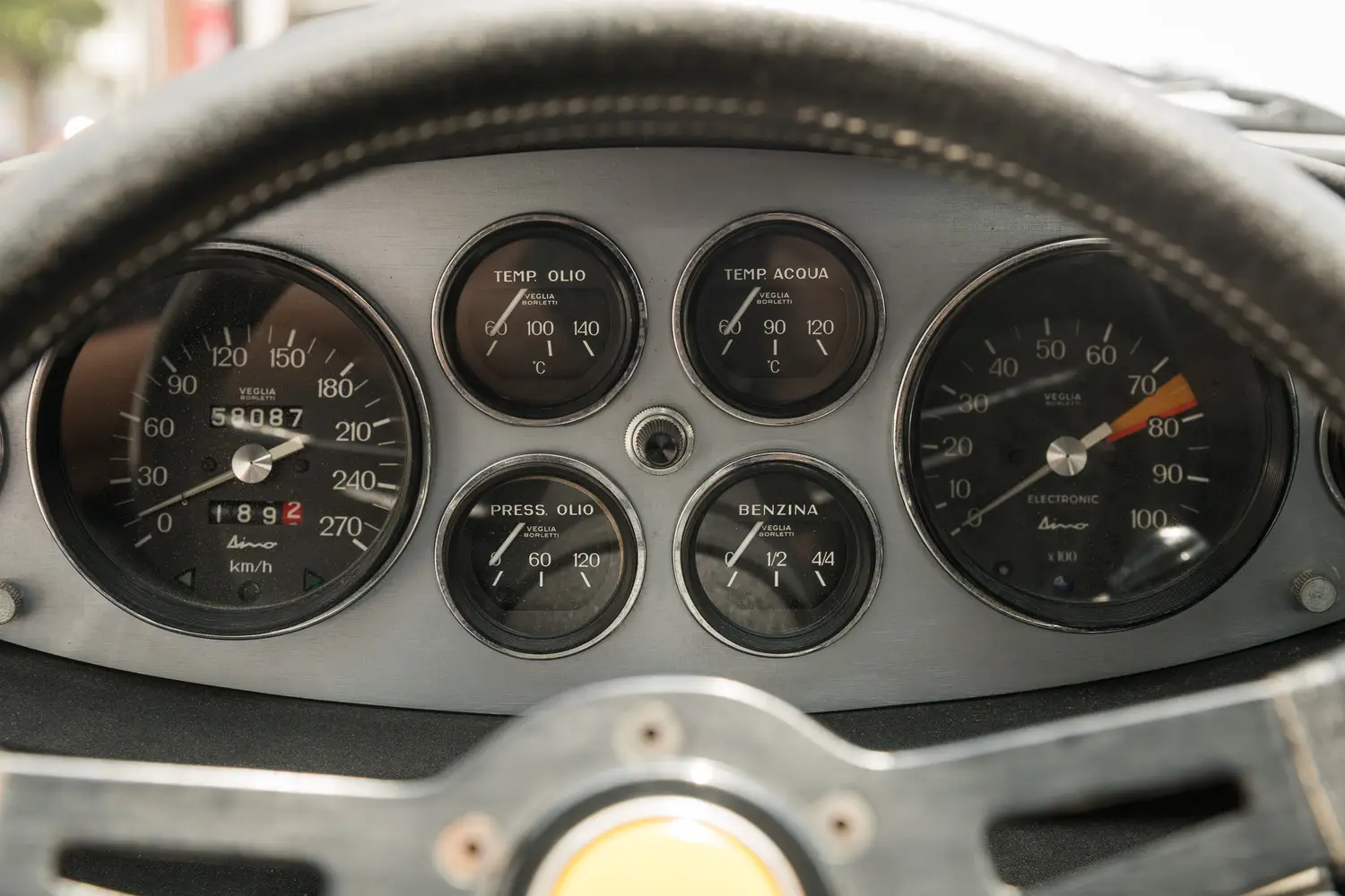 In addition, unlike many Dino examples, this car was basically a “race car.” No AC, factory radio delete, no chairs, no flares and NO power windows. Can we say lightweight?