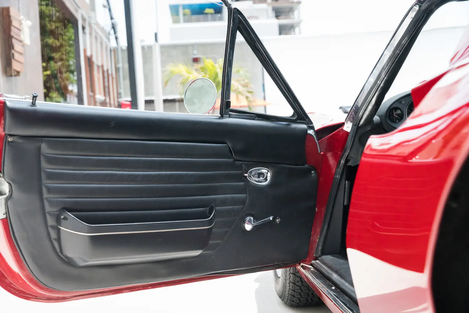 At some point in the 1980s it was given a very simple repaint, in its original and rare Rosso Bordeaux color yet still maintained its complete original Black interior including one of the nicest preserved Mousehair dash I have seen! A 36,000 mile time capsule with all original glass, gauges, rubber and stunning chrome.
