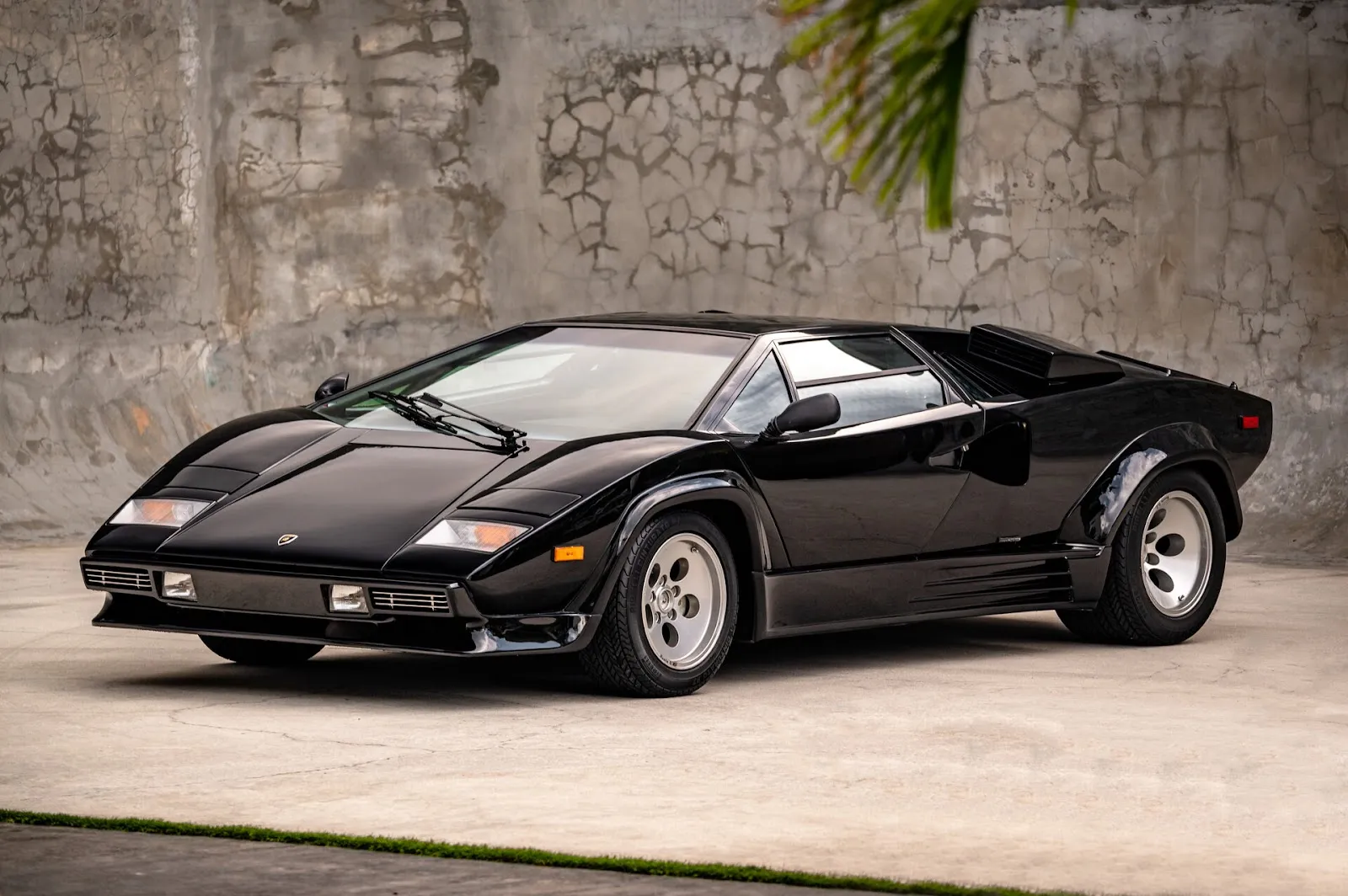 The 25th Anniversario, introduced in 1988 to celebrate Lamborghini's quarter-century milestone, represented the final and most refined evolution of the Countach lineage. Under the direction of Horacio Pagani, the model underwent over 500 modifications from its QV predecessor, featuring distinctive stricken air intakes on the rear shoulders and a redesigned rear bumper to comply with U.S. safety regulations.
