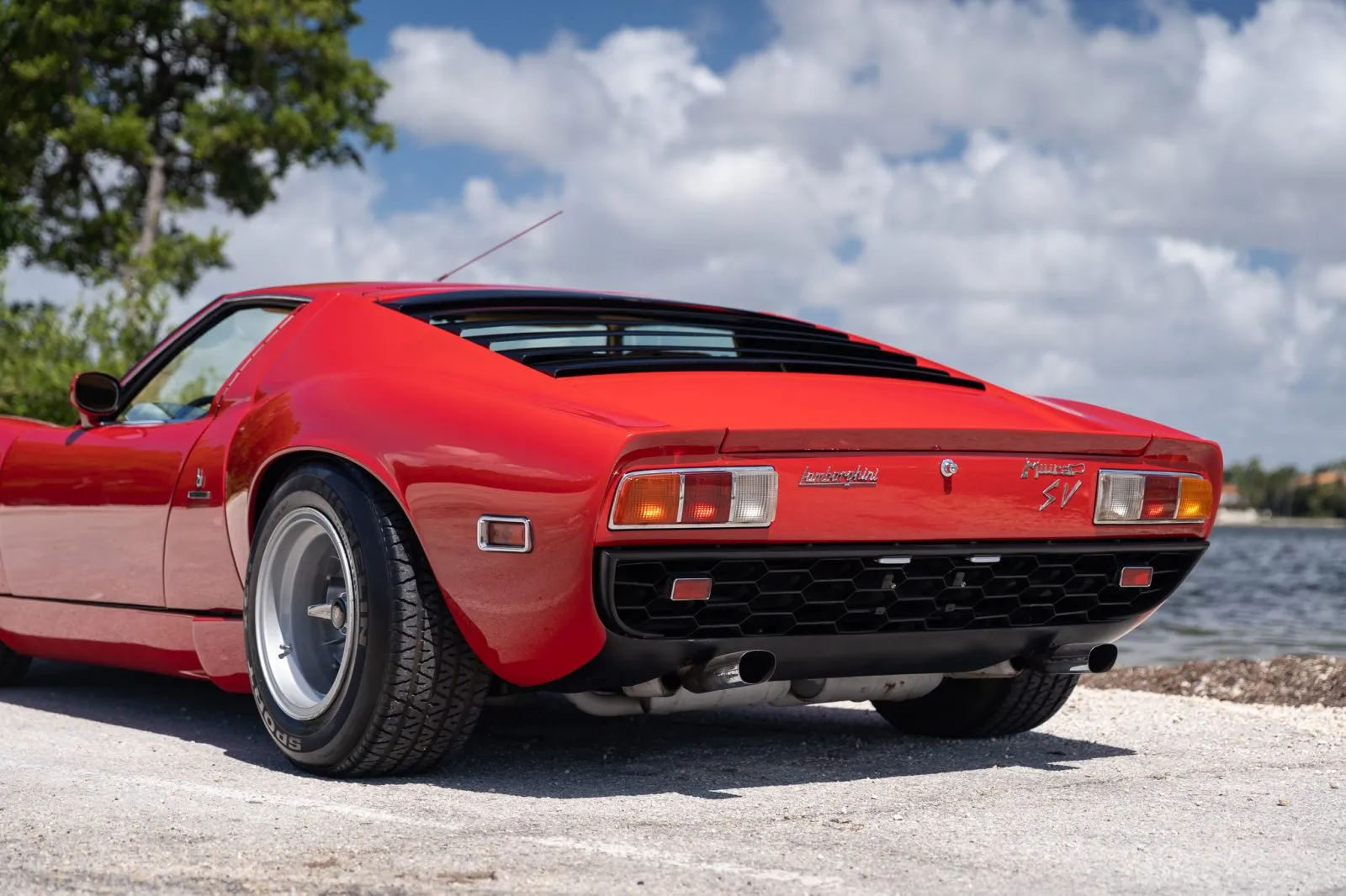 The Geneva Motor Show in 1971 saw the debut of the final and most refined version, the SV. It represented the culmination of all the learning and development from the previous models. The SV had a distinct lubrication system for both the engine and gearbox, which was a welcome addition. Additionally, it had a limited-slip differential and wider rear track. Power increased to 385 horsepower, while the distinctive headlight 'eyelashes' were removed for a cleaner appearance.