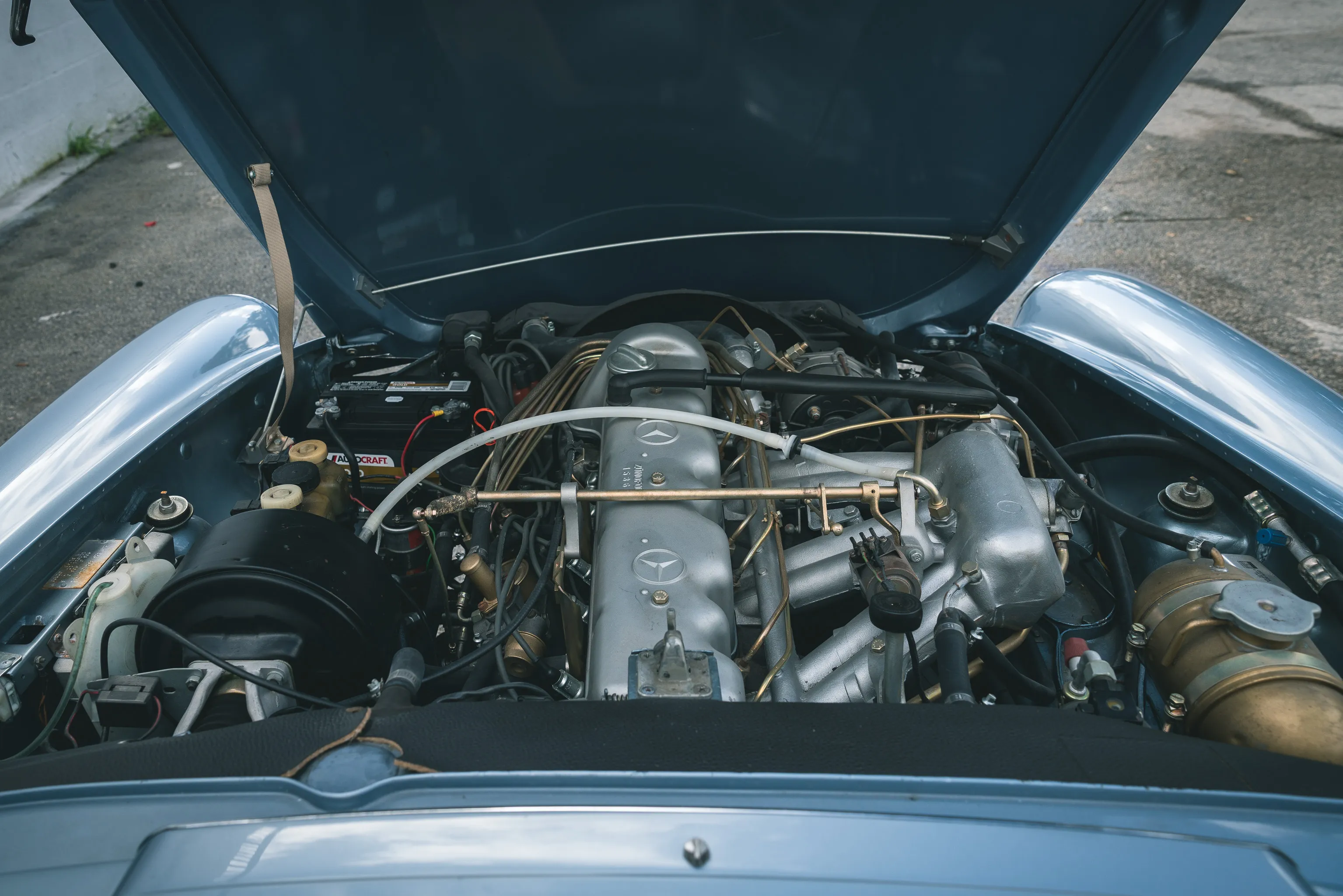 The 280SL marked the final evolution of Mercedes-Benz’ venerable SOHC M180 inline-six, before it was superseded by the entirely new DOHC M110 inline-six introduced with R107 1974 European 280 SL models. For some time, it was also used in the W109 300 S-Class, where it retired the expensive 3 liter M189alloy inline-six.