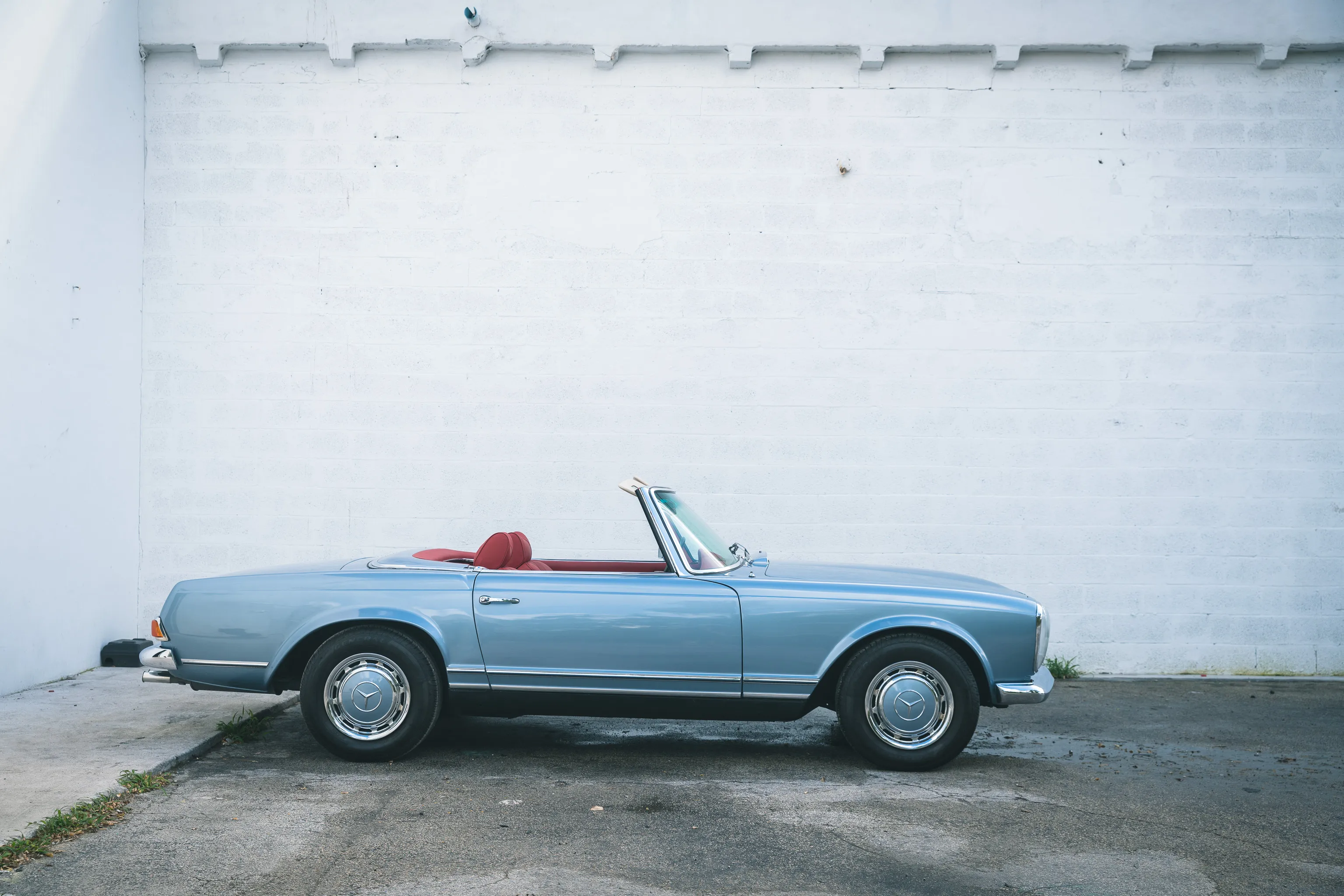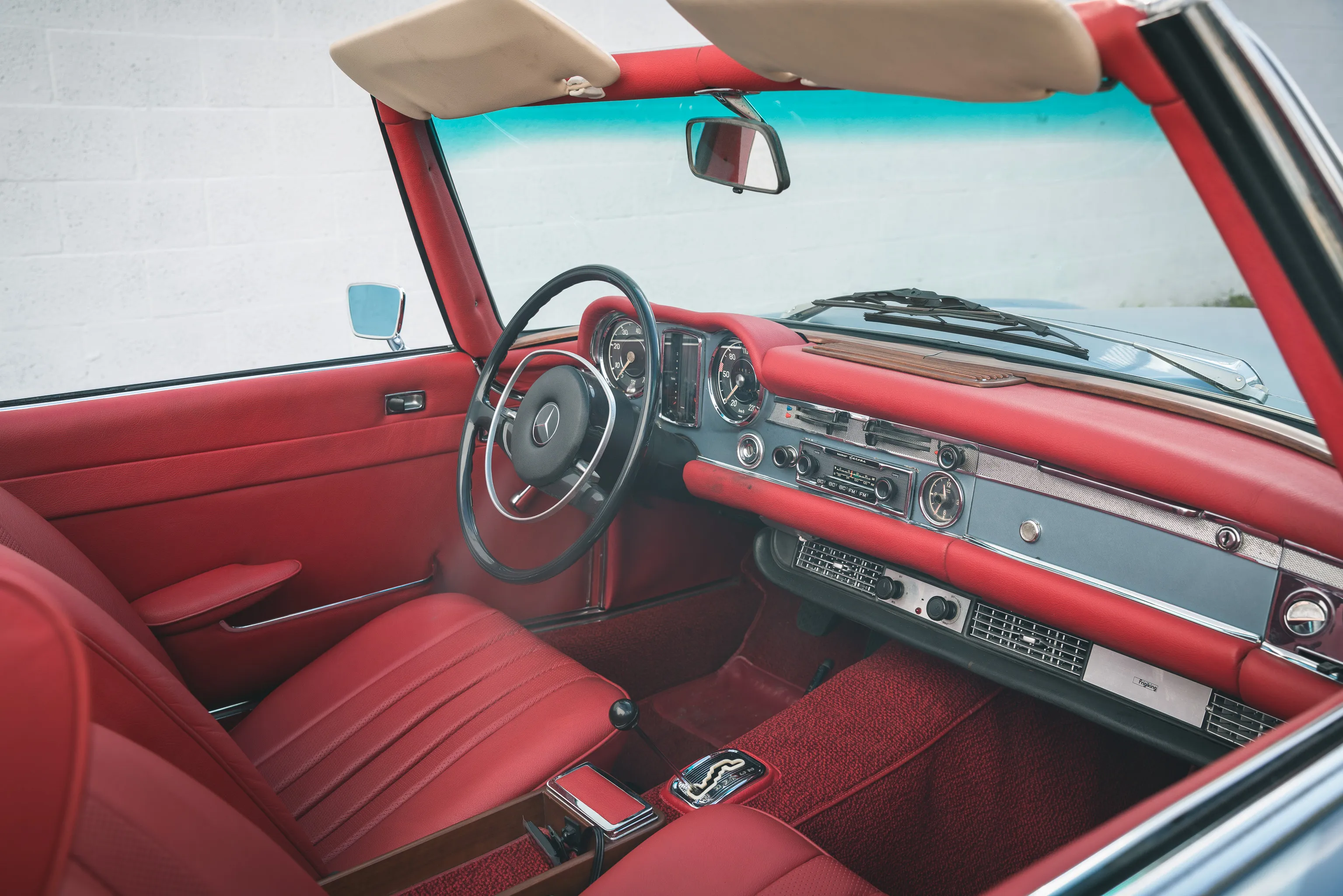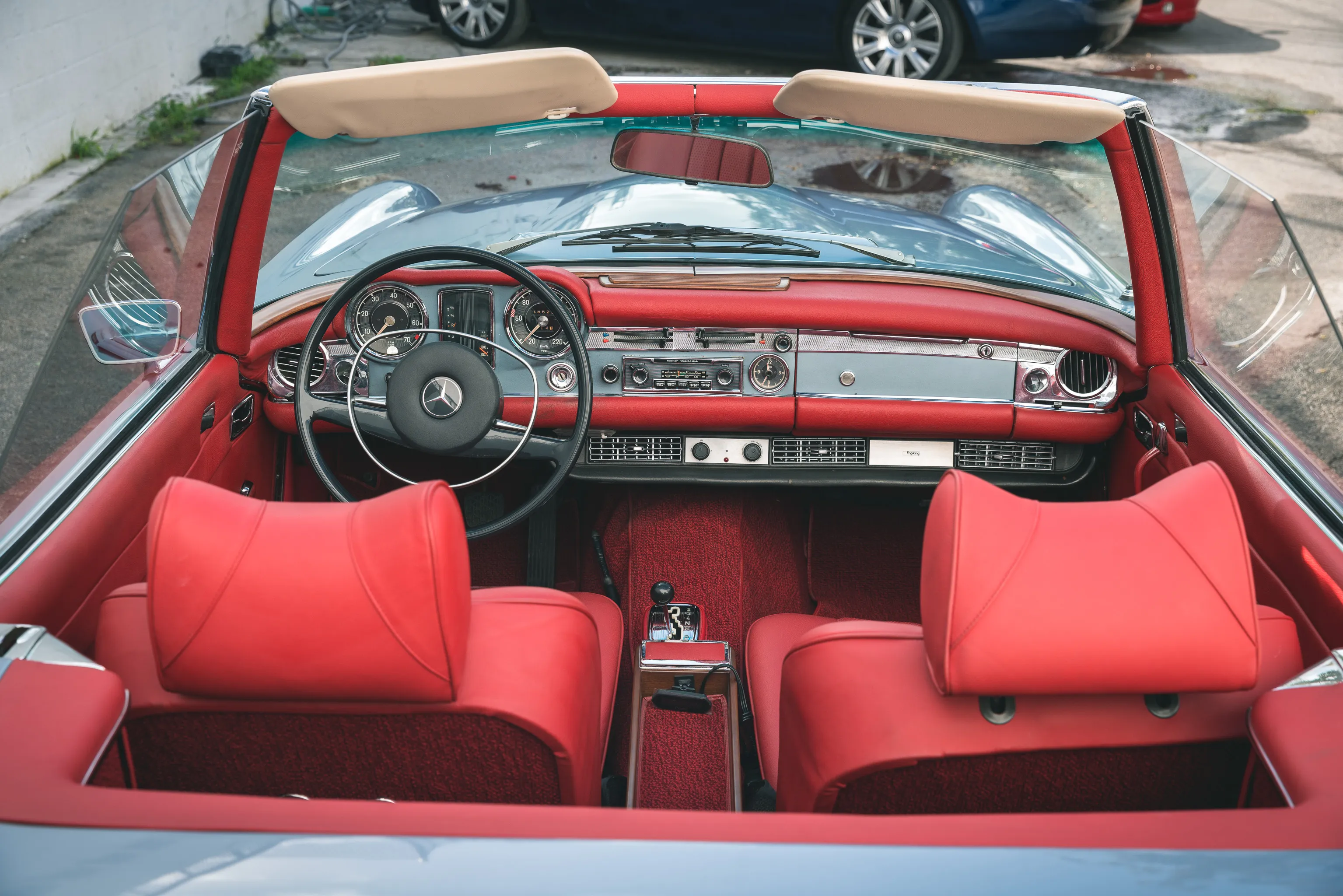 W113 SLs were typically configured as a “Coupe/Roadster” with a soft-top and an optional removable hardtop. A 2+2 was introduced with the 250 SL “California Coupe,” which had a fold-down rear bench seat instead of the soft-top.