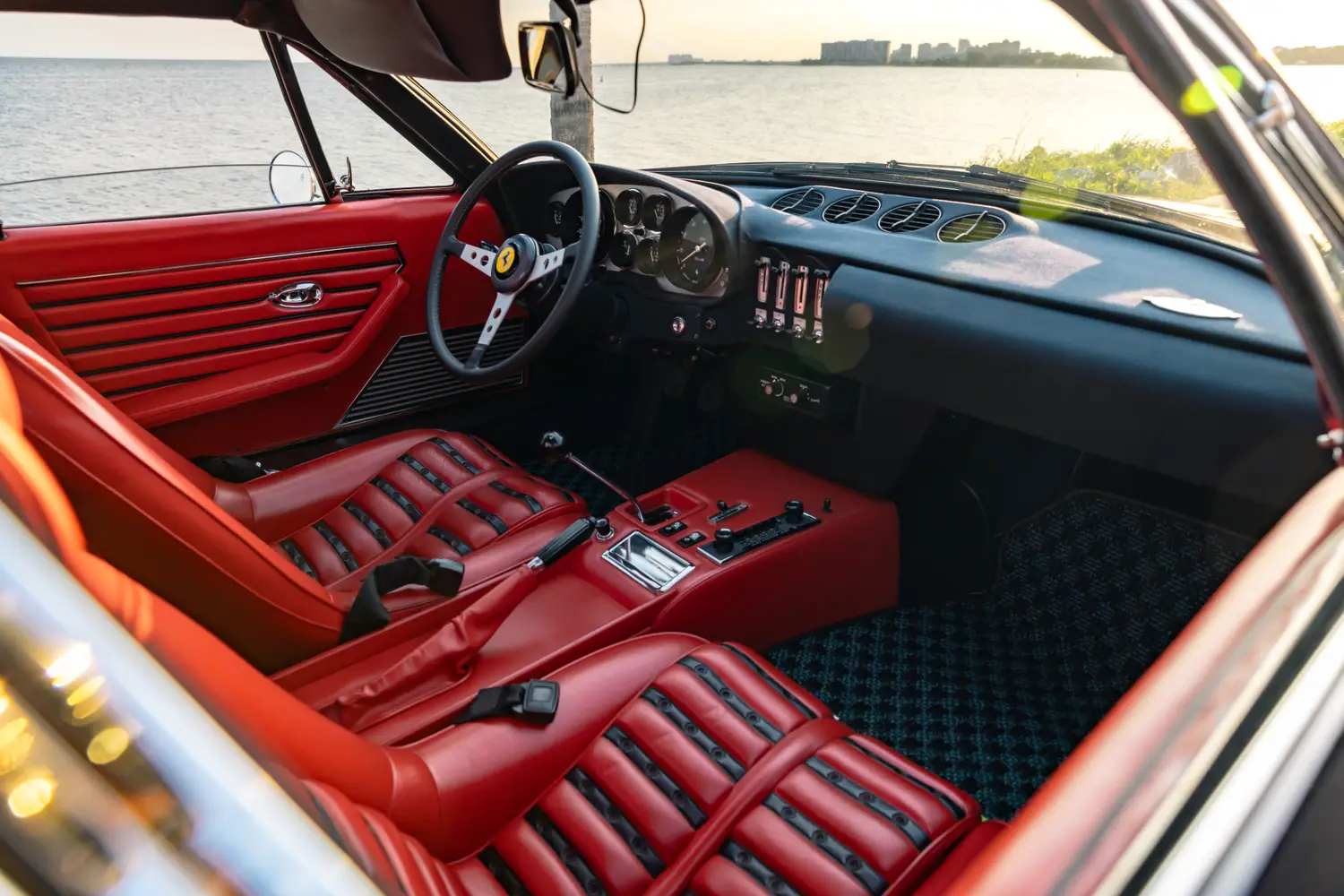The venue for the new model’s launch was the October 1968 Paris Salon, and its immediately successful reception saw it being nicknamed the ‘Daytona’ in honor of the Ferrari factory team’s 1-2-3 defeat of the mighty Ford GT fleet in the 1967 Daytona 24-Hour race. Shortly after debuting the gorgeous GTS/4 Spider, a number of important revisions were introduced on both the Berlinetta and Spider versions. These changes came about as a result of the newly imposed federal safety legislation in the USA that deemed covered headlights illegal. Ferrari and Pininfarina were subsequently being forced into carrying out a mild front-end makeover. Their answer was to fit the Daytona with retractable headlights in early 1971.