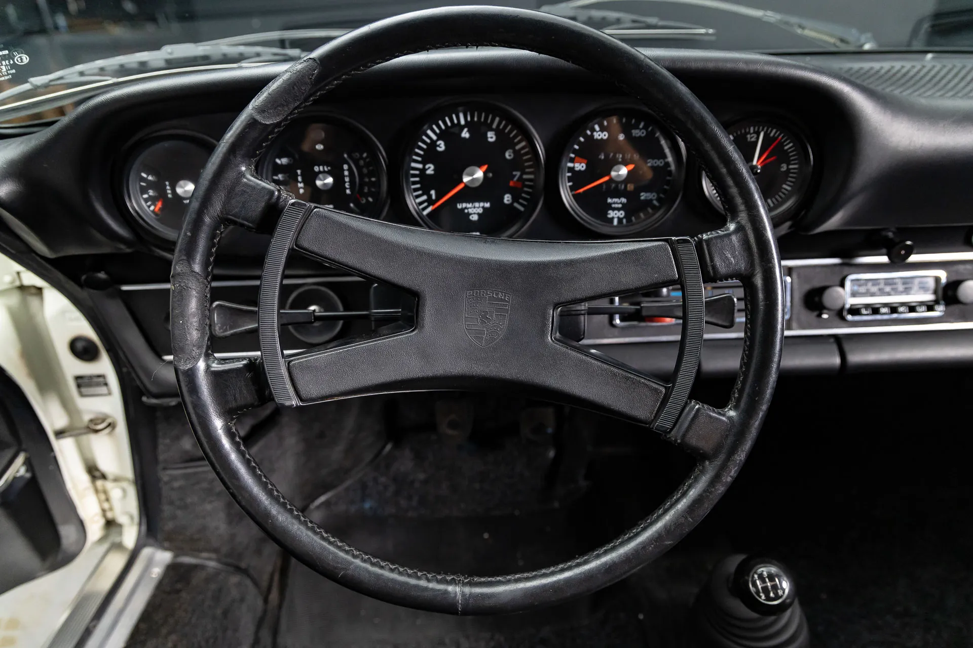 This particular Carrera RS 2.7 Touring sports that classic combination and stands as a near-original example. This is a true "benchmark" Carrera RS. It’s been cherished by a single family for much of its life, a testament to its care and preservation. Currently, it wears 16-inch Fuchs wheels and a Nardi steering wheel, but both the original 15-inch wheels and factory steering wheel are included, allowing for a return to its stock form if desired.