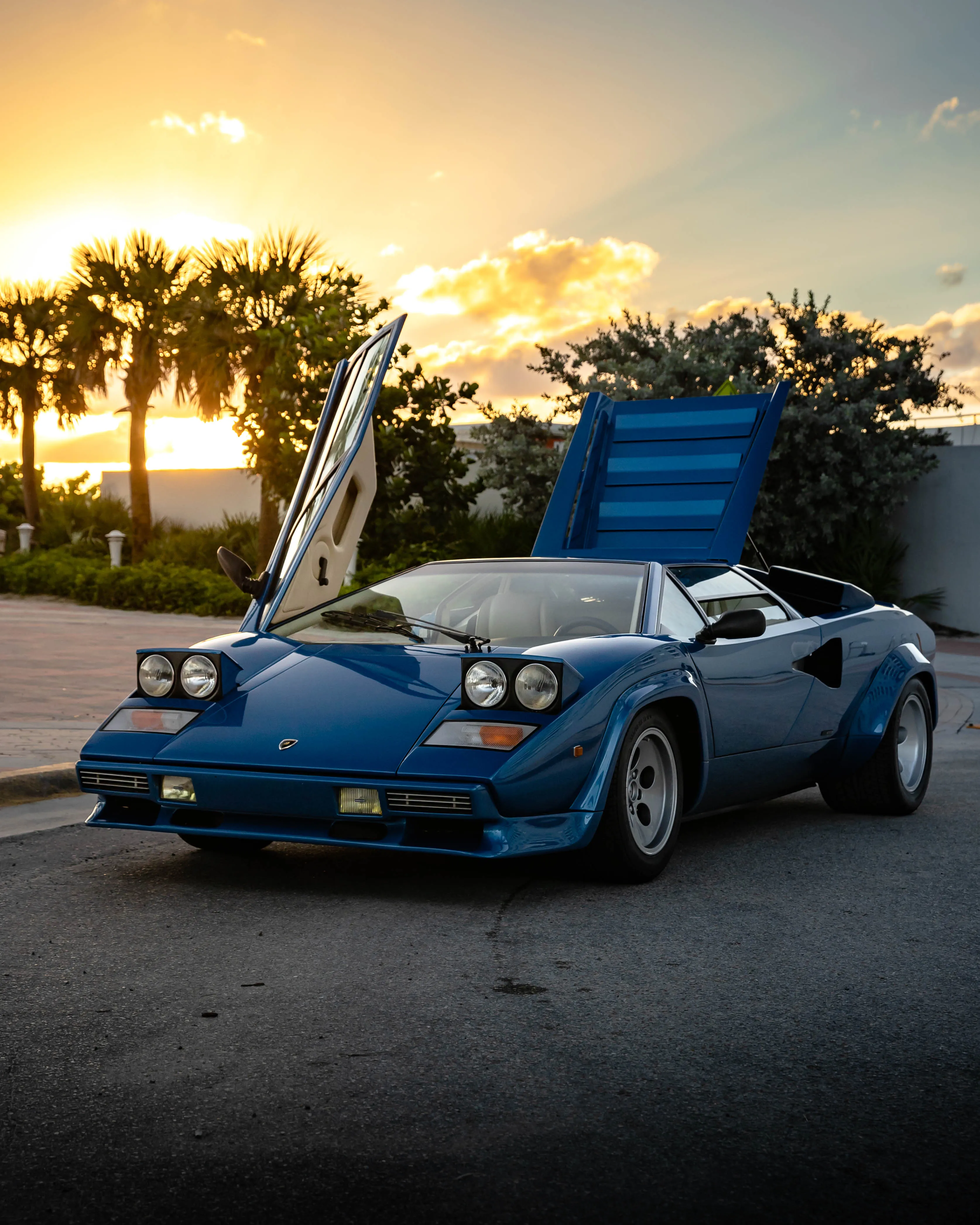 This car is one of just four LP5000S models finished in Bleu Tahiti among the 321 LP5000S units produced between 1982 and 1985. The LP5000S itself represents a critical evolution in the Countach lineup, bridging the early design with advancements that would define the later models.