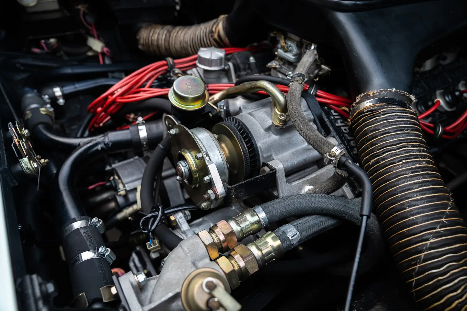 The 1985 Lamborghini Countach 5000 QV Downdraft represents the pinnacle of the iconic Countach line, boasting a potent 5.2-liter V12 engine equipped with four valves per cylinder, producing an impressive 455 horsepower. This engine, with its Weber downdraft carburetors, significantly enhanced both performance and throttle response. The exterior maintained the Countach's signature angular and aggressive styling, flared wheel arches, and prominent rear wing. Inside, the cockpit featured a driver-centric layout, including leather upholstery and advanced instrumentation for its time.