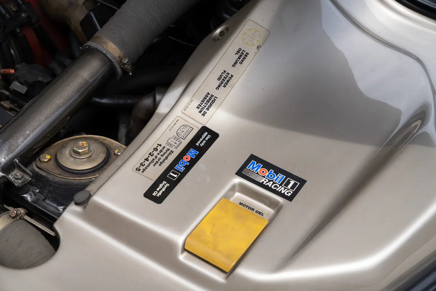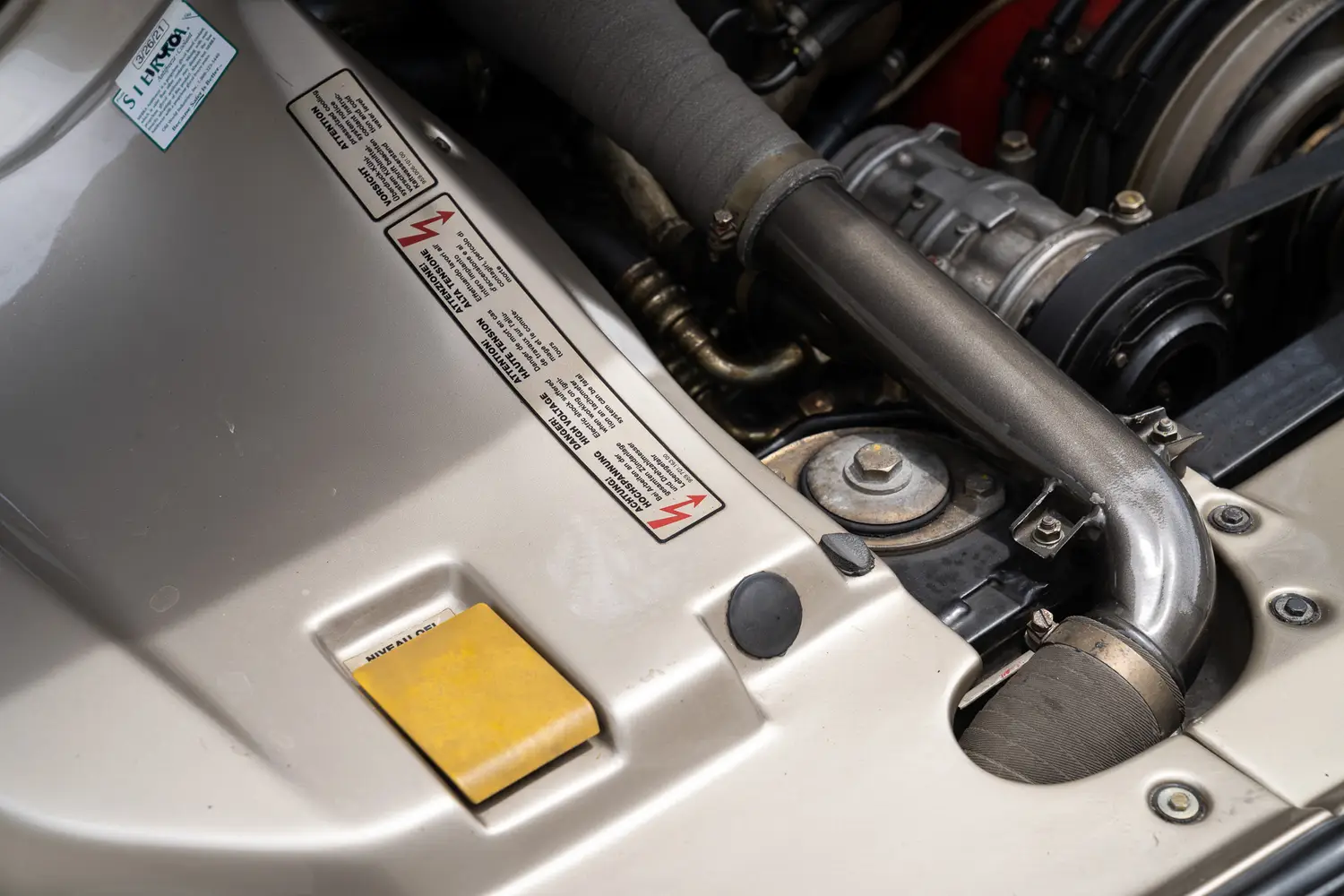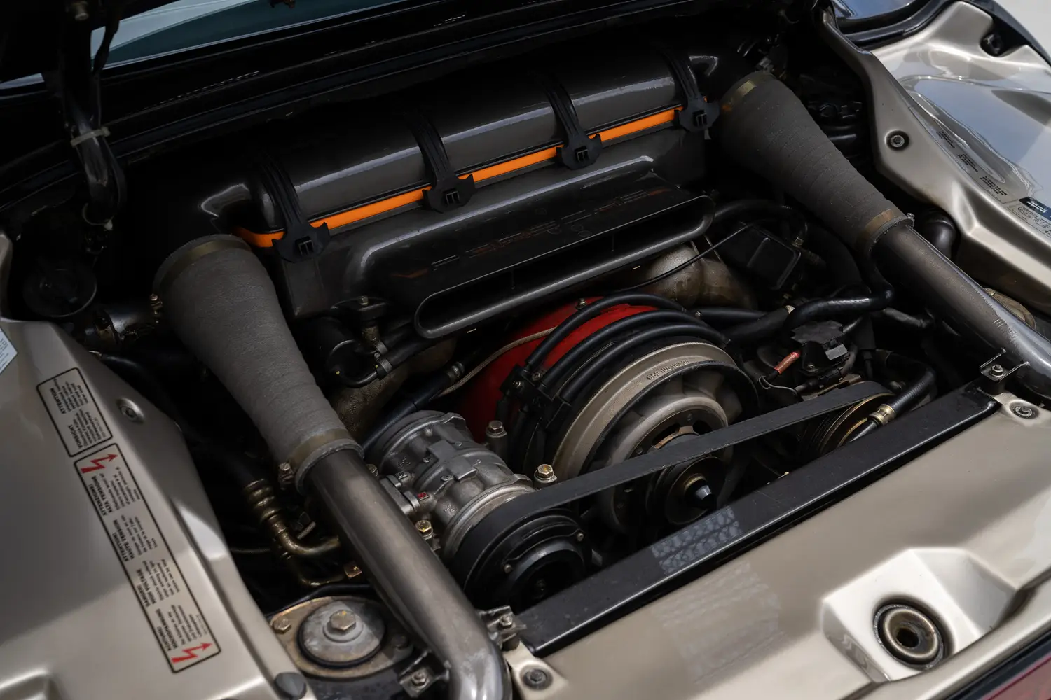 • Two identical Kühnle, Kopp & Kausch (KKK) turbos mounted near the cylinder banks each have their own intercooler. At low revs, exhaust from both banks is directed to the left turbo as the right unit is bypassed by a one-way valve