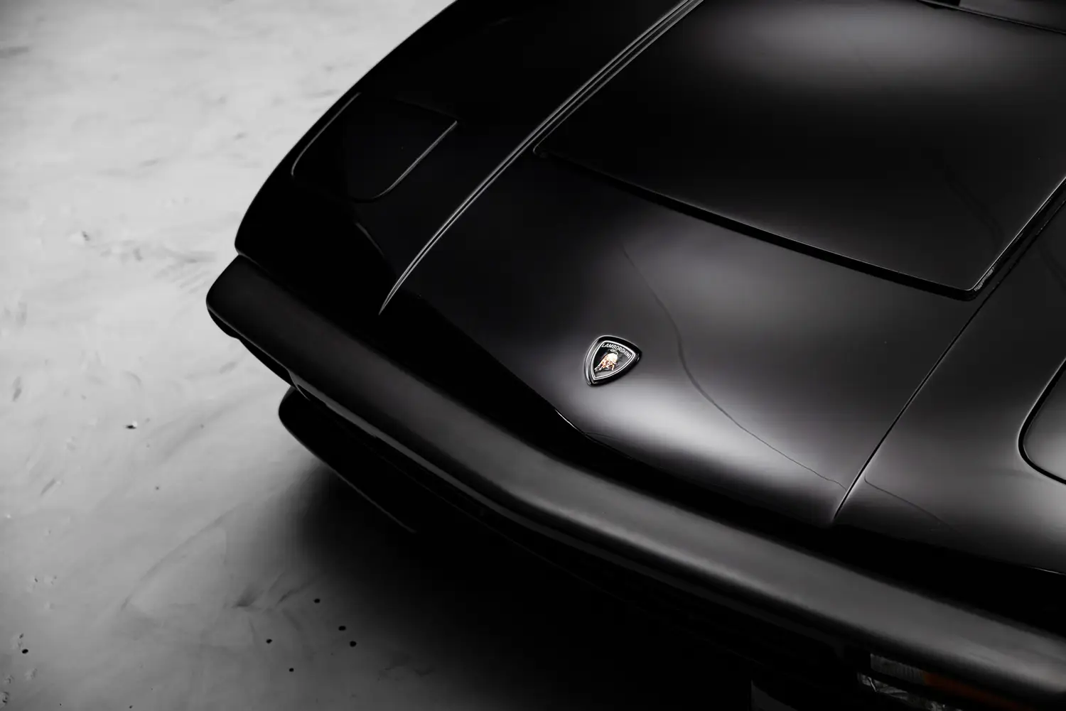his Lamborghini Jalpa, believed to be the final unit produced for the North American market, is a standout in both rarity and originality. Finished in Nero over Nero with white piping and fitted with optional white Silhouette wheels, this configuration is unique to this example, custom-ordered by its original owner.