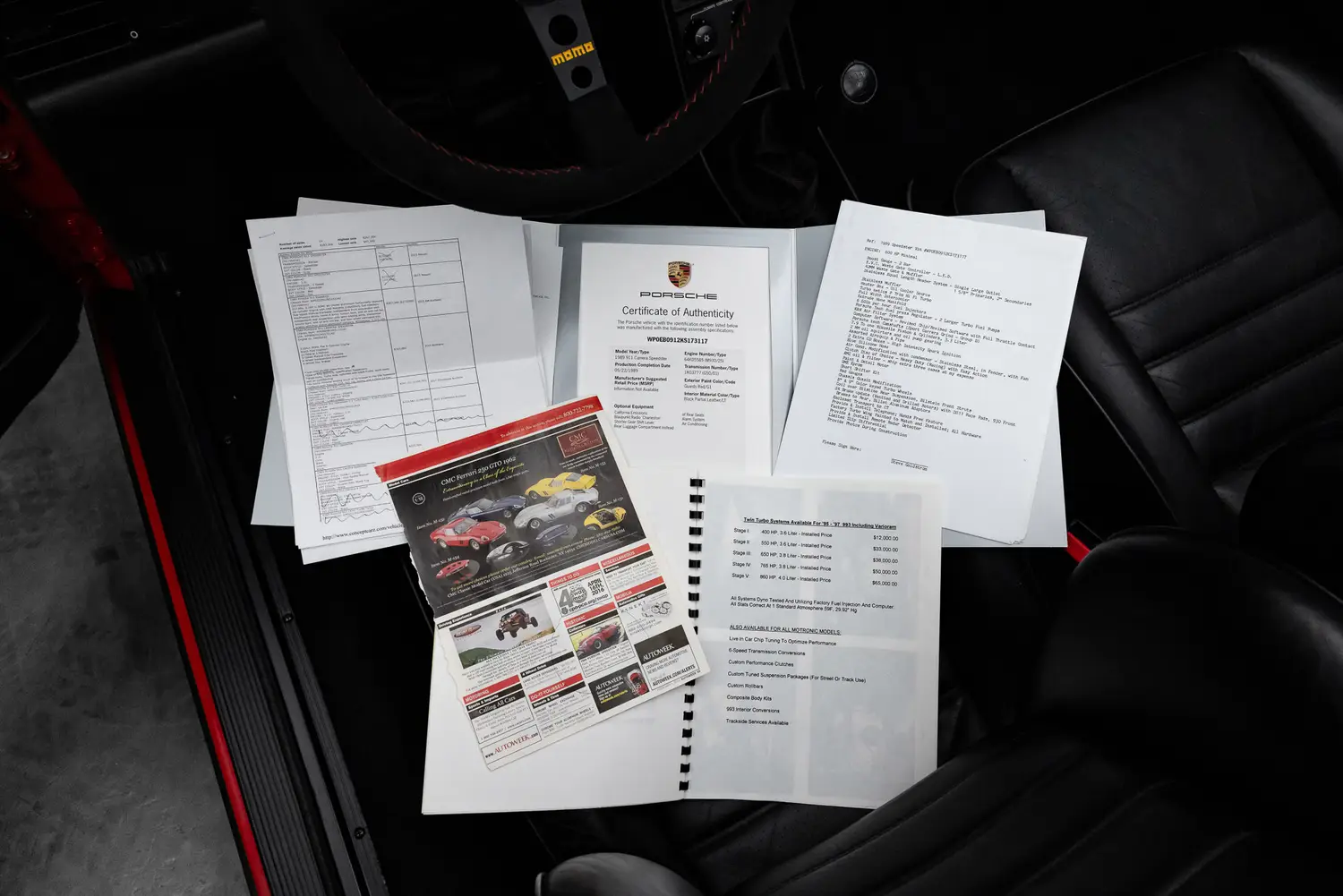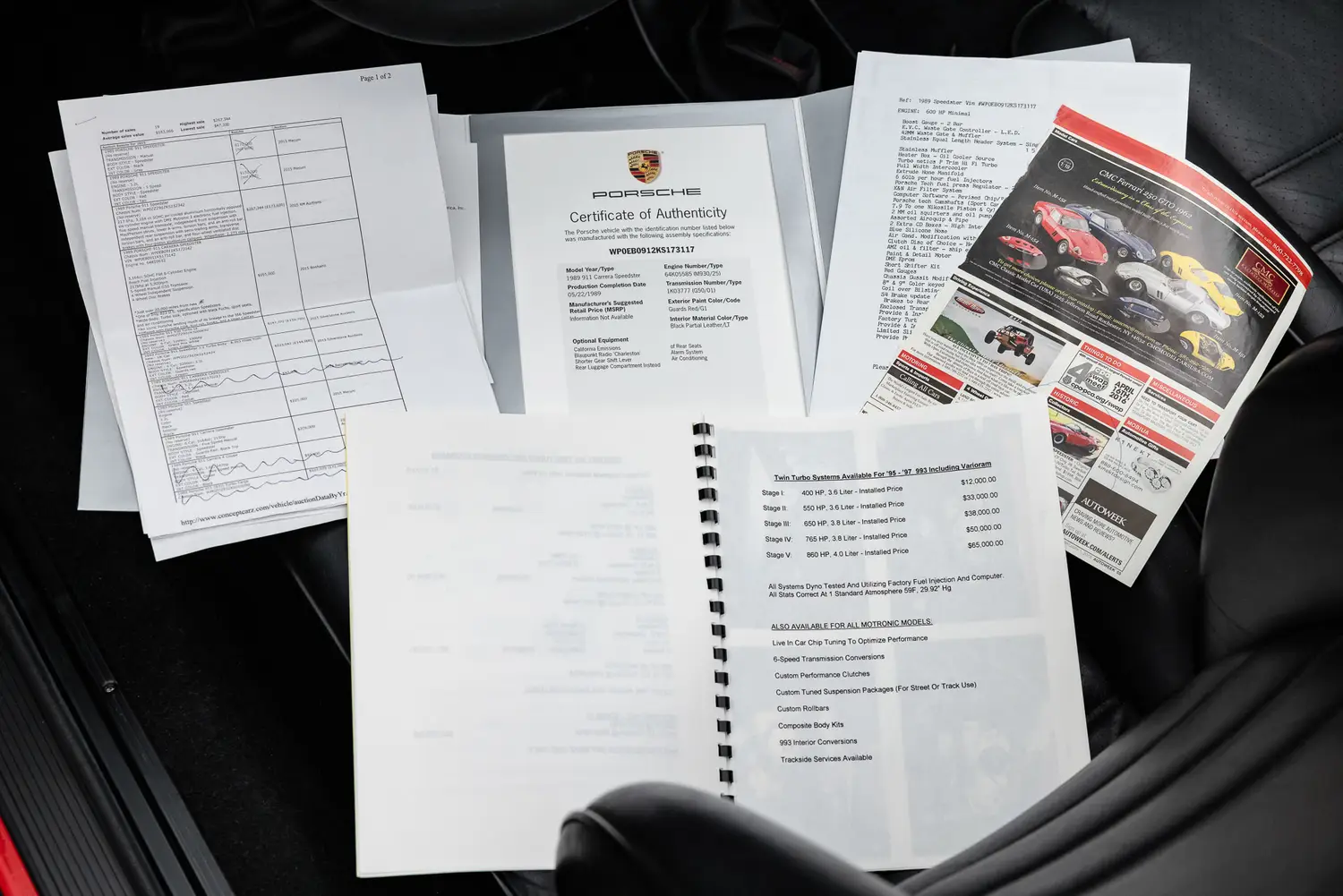 Additional equipment includes a mobile telephone with hands-free functionality and an Alpine digital remote radar detector. Built with both performance and usability in mind, this Speedster represents a detailed and mechanically focused upgrade to Porsche’s limited-production 1989 open-top platform.