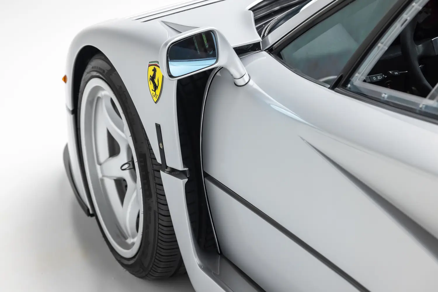 This particular F40 boasts a fascinating ownership history, having been delivered new by Ferrari directly to Sheikh Mohamed Yousef Zahid of Saudi Arabia. Shortly after, it found its way to Japan, where it was famously owned by eccentric collector and racer Koji Aoyama. Known for his passion for high-performance machines, Aoyama’s ownership of this F40 is a testament to its unique appeal and capabilities. This car sat among some other interesting Ferraris, include a silver Enzo on aftermarket wheels and a silver/white F50.