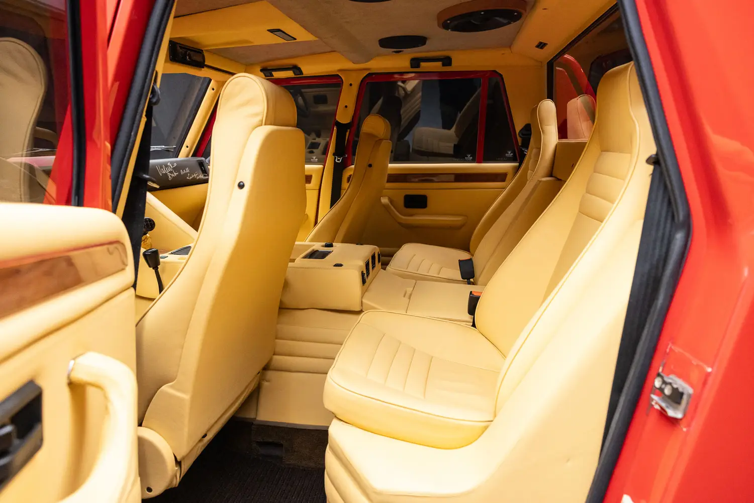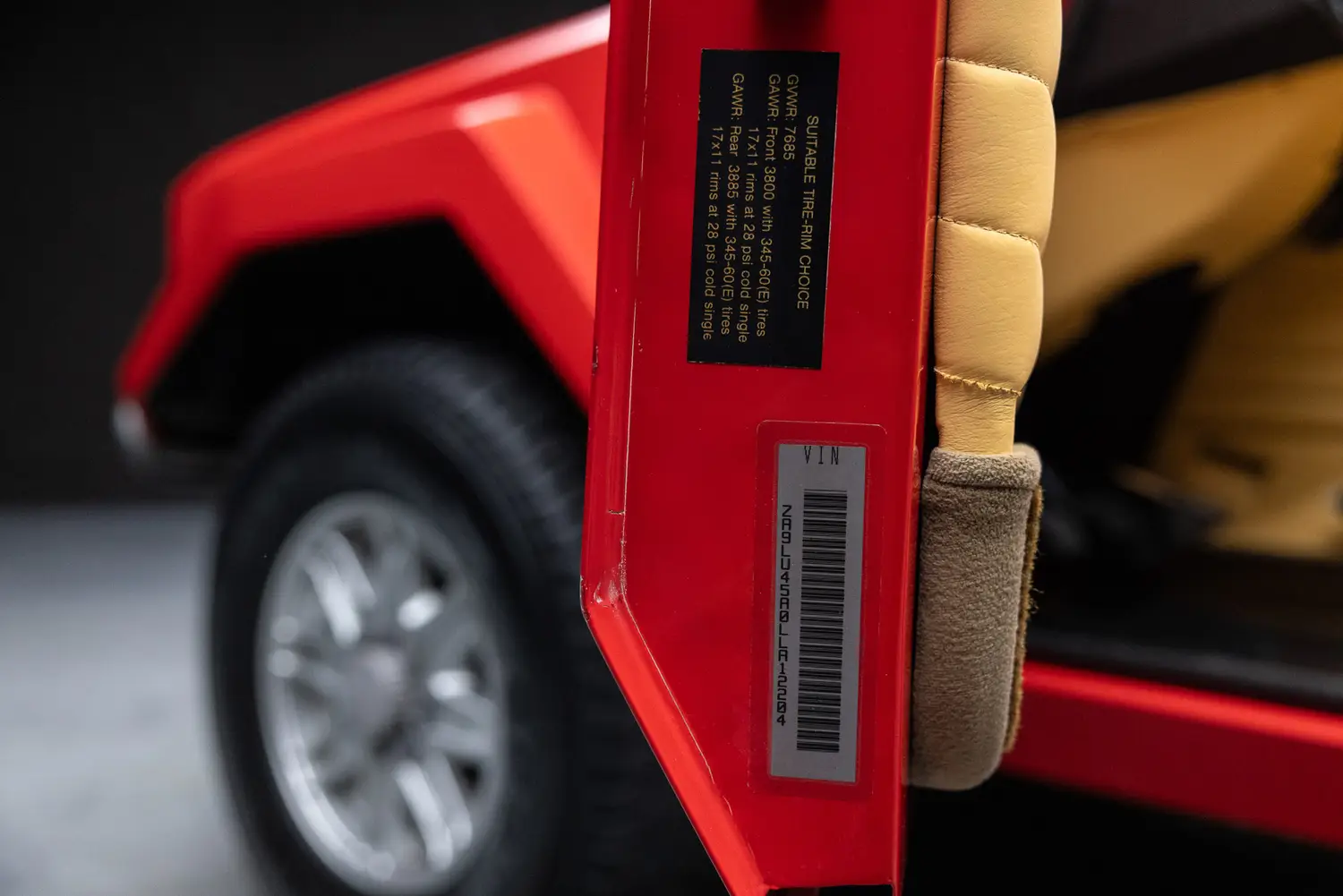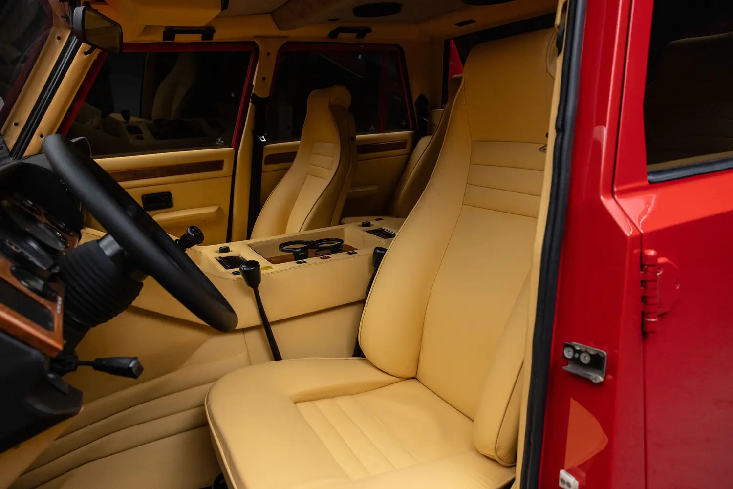 This example, #2204, has traveled through Saudi Arabia, Japan, and the Netherlands before arriving in Miami. Finished with a champagne leather interior and wood trim, it retains key features like the tailgate, jump seats, and massive 345/60 R17 Pirelli Scorpion tires developed specifically for this model.