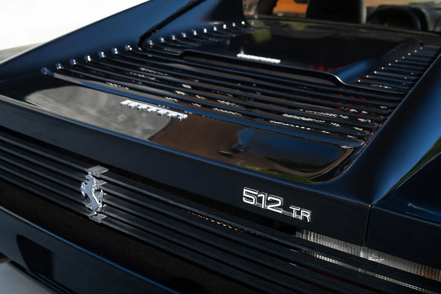This 1993 Ferrari 512 TR (#1660) is a U.S. version (1 of 408) resplendent in Nero (black) with matching Nero (black) leather interior. The car is showing 5,268 miles and has recently received a full service and new Pirelli tires.
