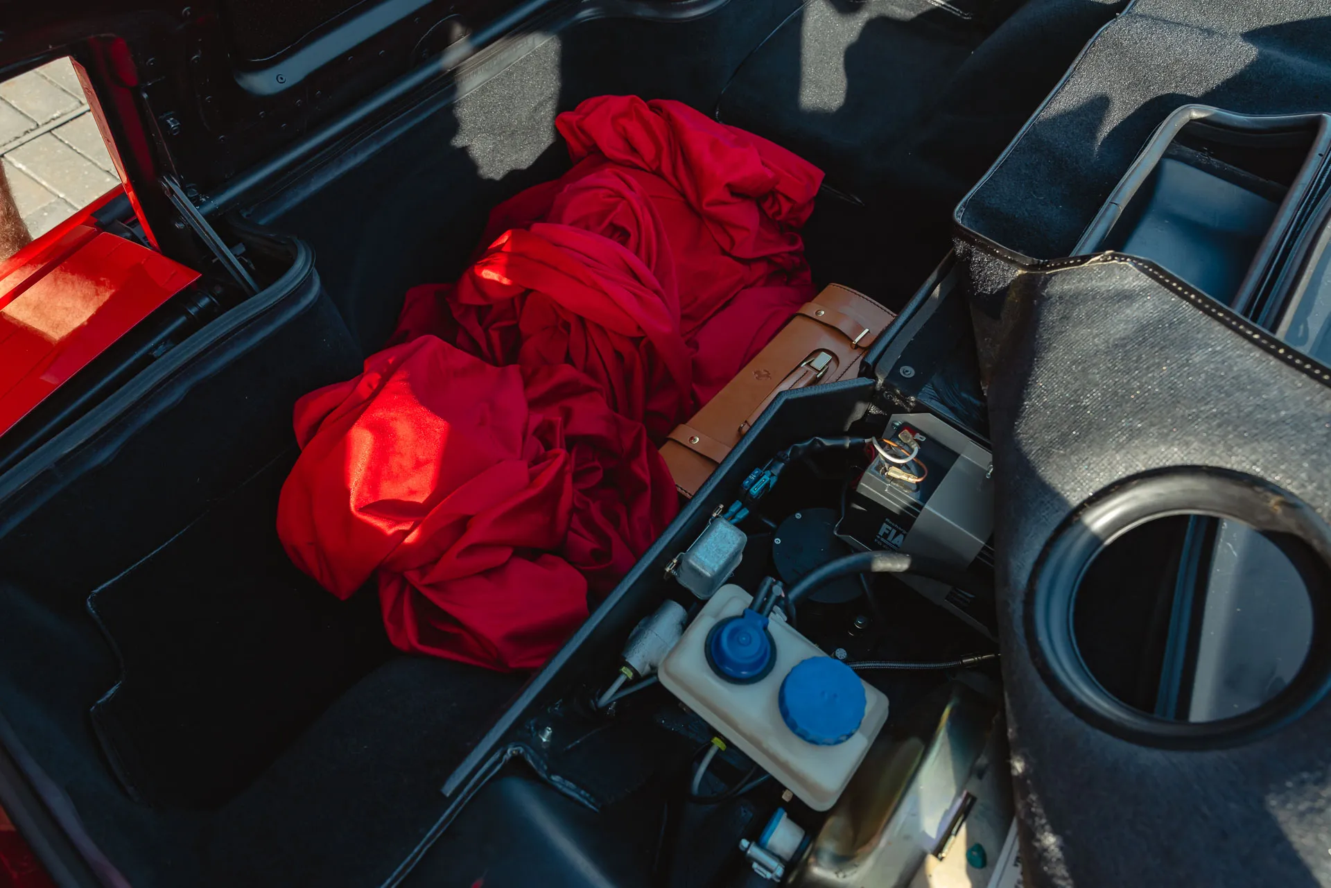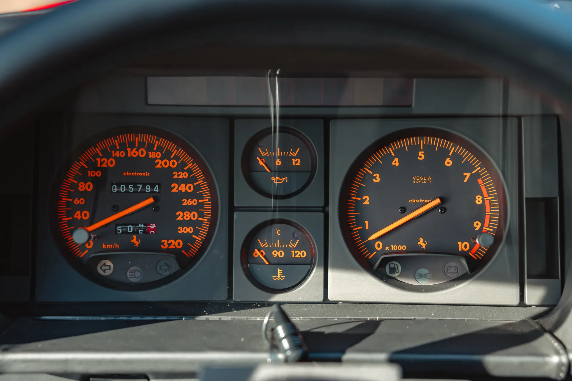 This reference example, finished in Rosso Corsa over Nero, has only 5,700 kilometers from new. It retains all its original books, manuals, toolkit with all pieces, keys, fobs, and even the factory fire extinguisher—details that underscore its originality and completeness.