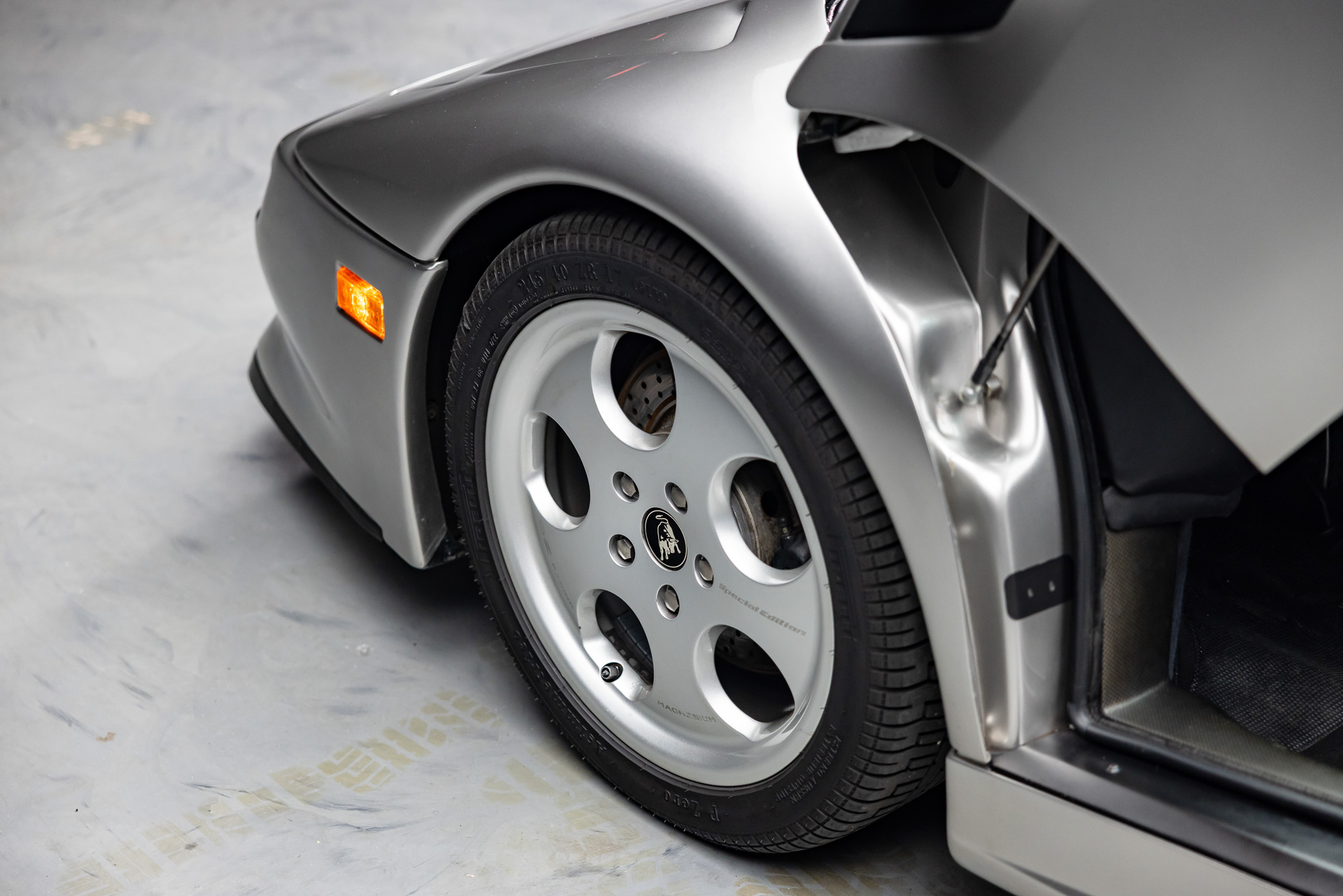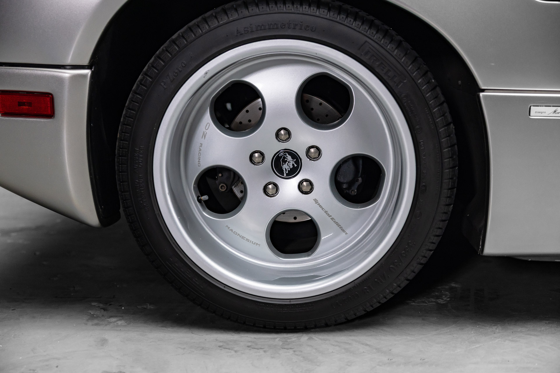 Visually, the SE30 introduced subtle yet purposeful changes. The front section was reworked with integrated straked brake cooling ducts. The rear featured a larger wing and repositioned fog and backup lamps integrated into the bumper. Slats in the engine cover aided cooling, while magnesium alloy wheels and SE30-specific badging completed the exterior. The signature metallic lavender (Viola 30th) became closely associated with the model, though Lamborghini offered customization, like this Argento Titanio SE30.