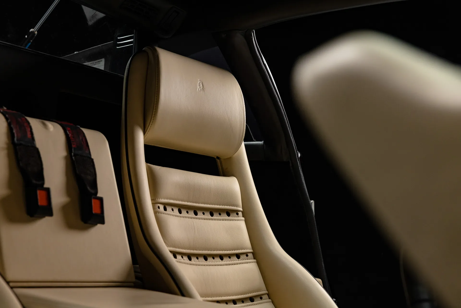 Equipped with twin Garrett T4 turbochargers with custom-built intercoolers, competition valves with race guides, cylinder heads were polished + ported, and a reprogrammed fuel injection system, power was pushed to over 700 HP. Modifications to the drivetrain included, custom Kevlar twin-plate clutch and a new short ratio gearbox to improve 0-60 times. The brakes were upgraded with cross-drilled, ventilated discs and ceramic brake pads