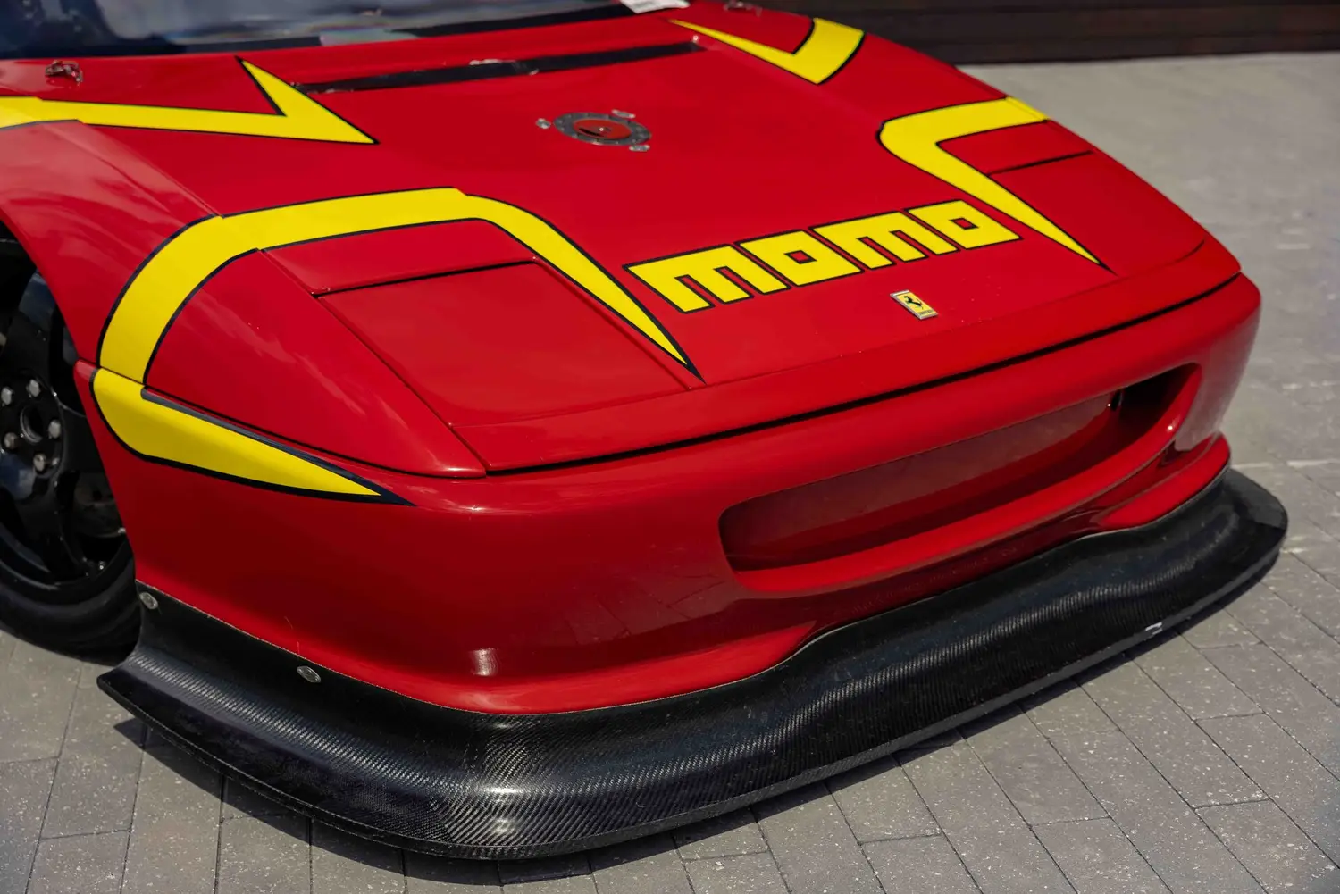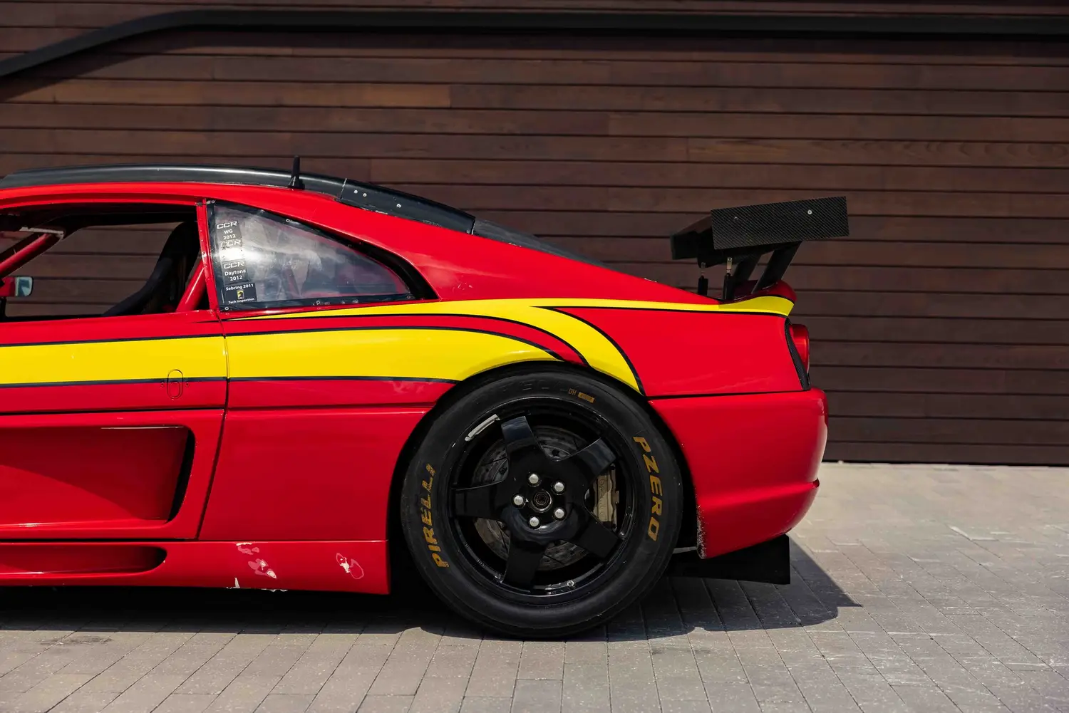 This F355, finished in Rosso Corsa with yellow Momo livery and equipped with black fabric racing seats, was purchased new in 1995 from Wide World Ferrari in Spring Valley, NY. Its journey to becoming a race car began dramatically when it was stolen in 1996 and stripped of major components. Fortunately, it was recovered and acquired by Kevin Ryan and Servizio in March 1997. Their vision was to transform it into a race car for the Speedvision Cup series, investing over $300,000 in custom modifications including carbon fiber doors, a custom roll cage, MOTEC engine management, and a race-tuned interior.