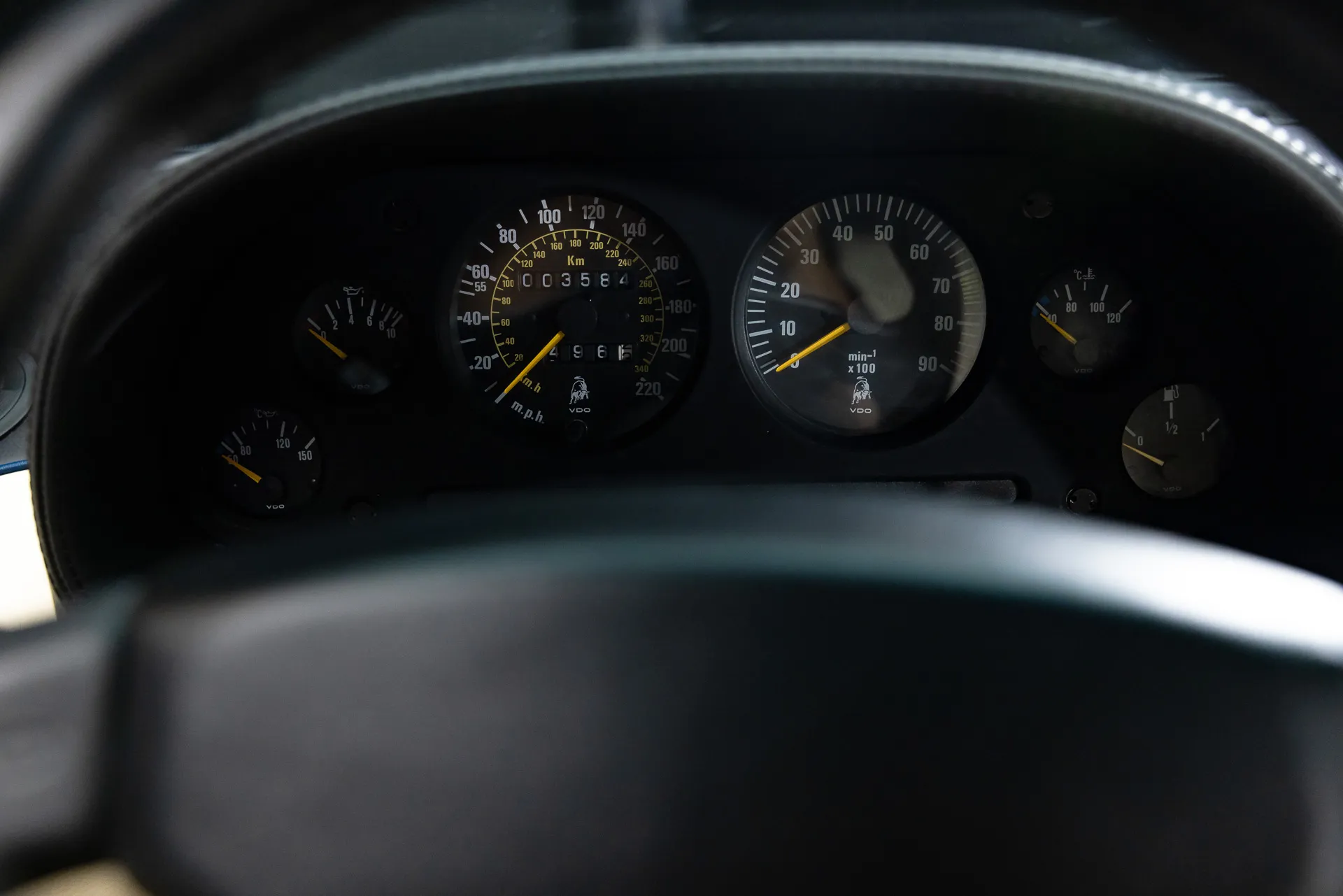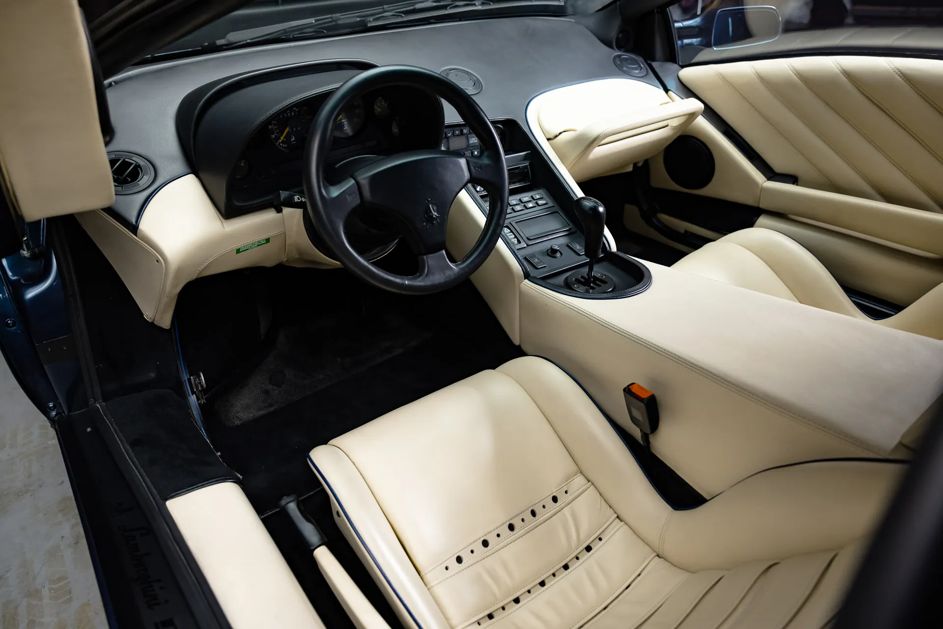 This 1995 Diablo VT is a one-off spec finished in Midnight Blue Metallic over Panna leather. Originally delivered to Lamborghini USA on November 24, 1994, it was first owned by Larry Swartz in the United States. It now shows only 3,000 kilometers.