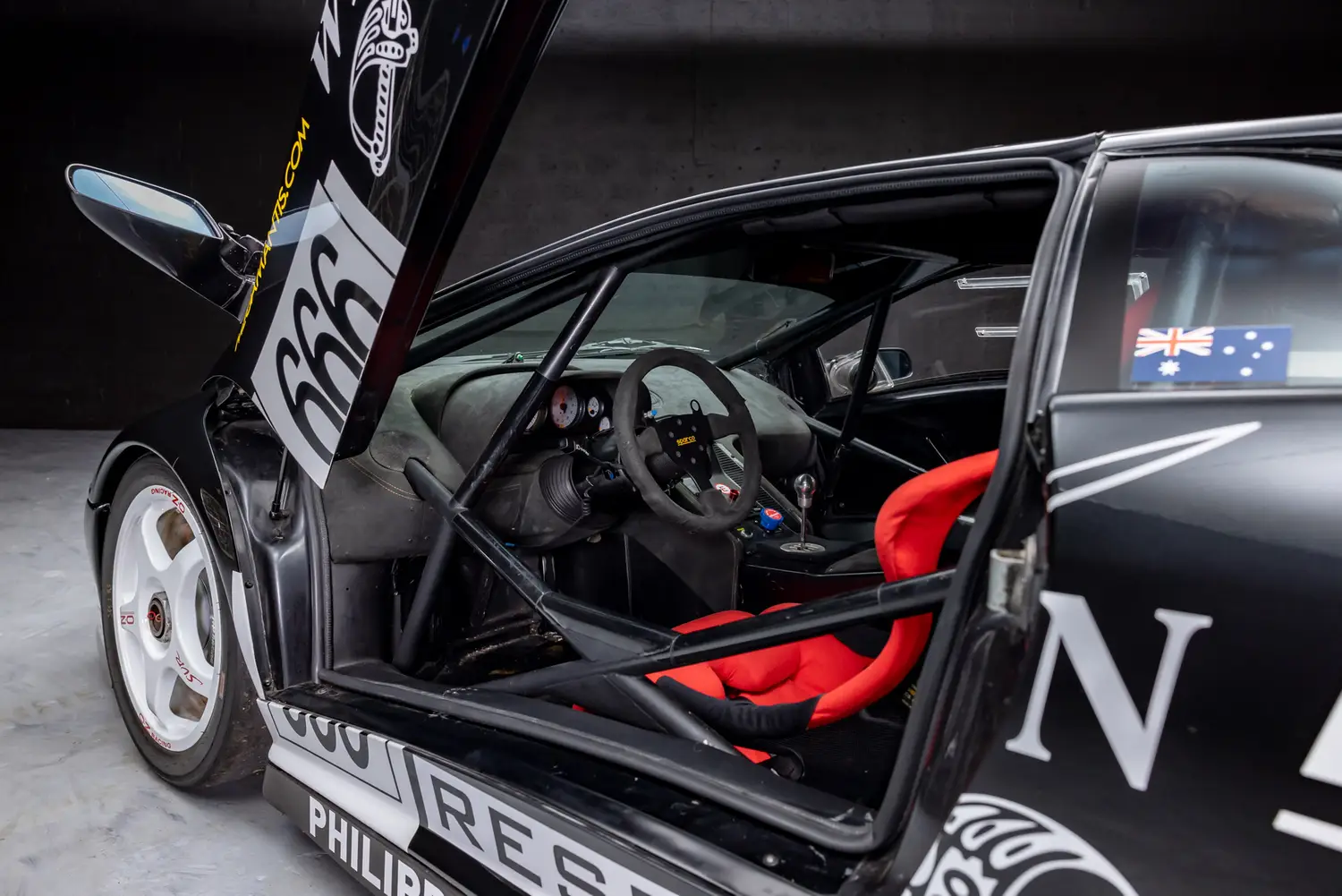 First campaigned in Europe where it won the Lamborghini Super Sport Trophy championship in 1998 with Fabio Santaniello, then brought to Australia to compete in the 2000, 2001 Australian Nations Cup Championships with driver Paul Stokell and Team Lamborghini Australia. Stokell steered this Diablo SV-R to victory in its debut race in Adelaide, beating Jim Richards in a Porsche GT3. It even managed to set a new lap record despite a 100kg weight ballast. That wasn’t the only highlight for the 2000 season, as it also put in an unforgettable performance in the pouring rain to take the win at Mount Panorama, Bathurst. It won 18 races overall in its two competition years in the Australian Nations Cup and finished as runner-up in the 2001 season.