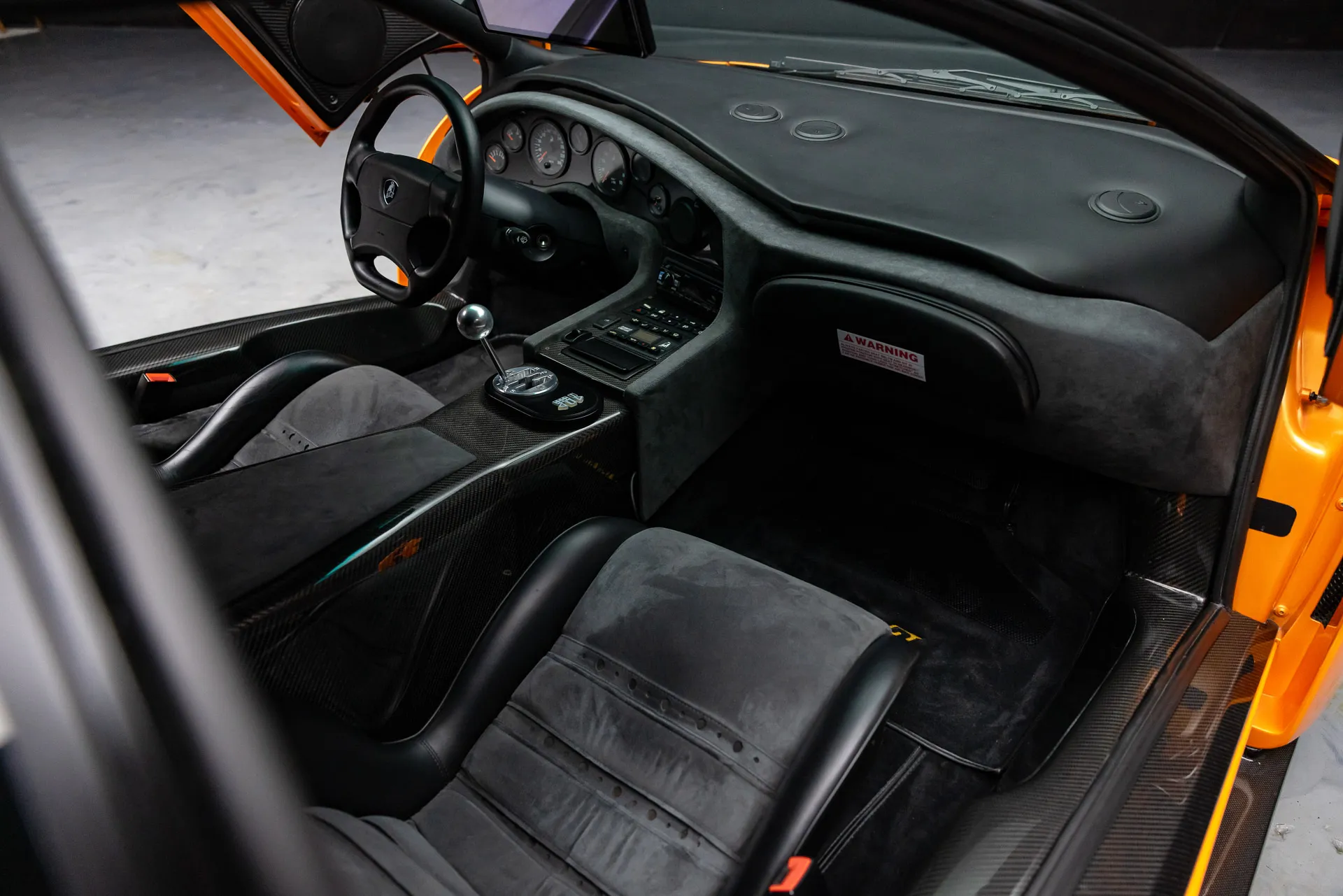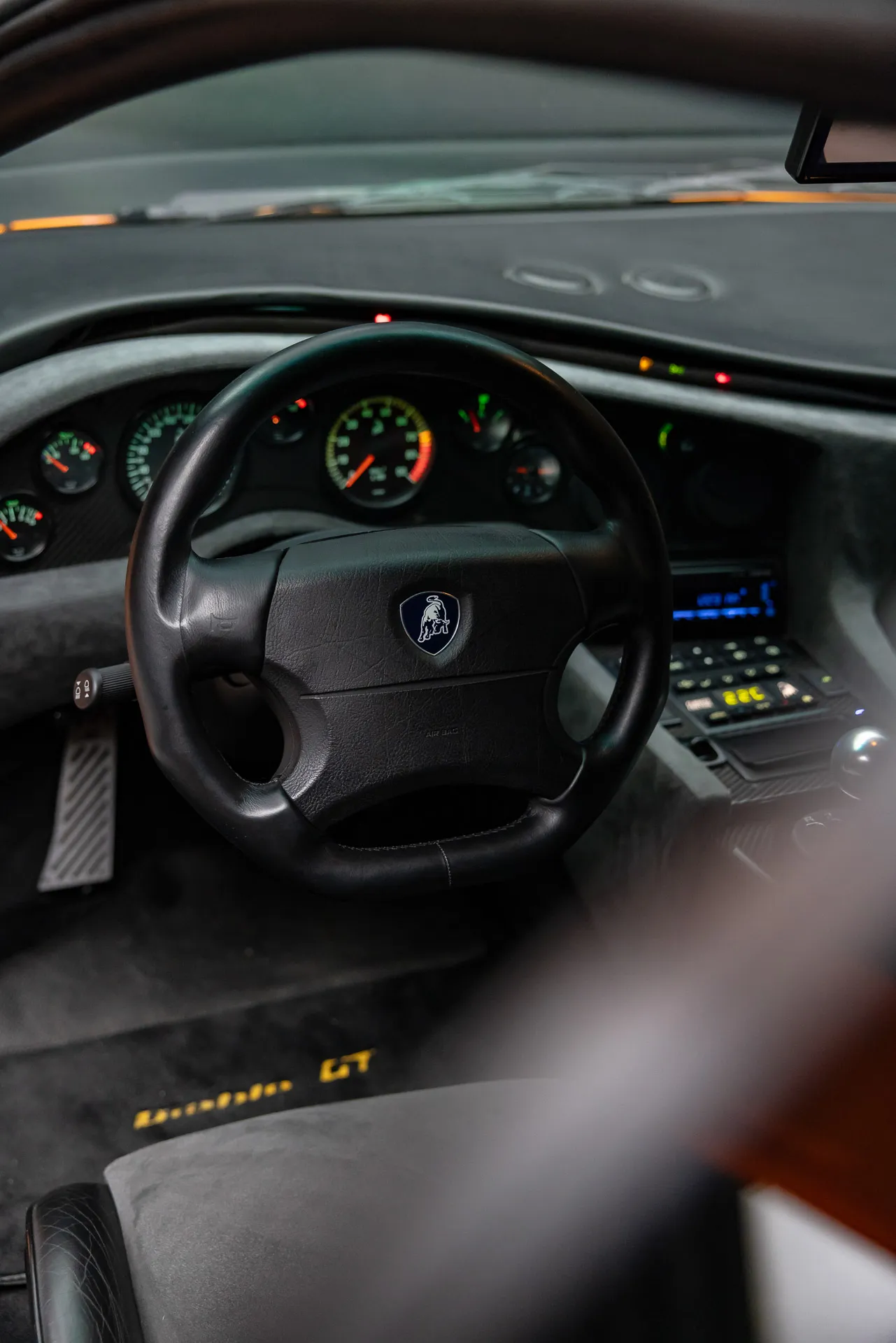 Inside, the Diablo GT features a minimalist, race-focused interior, with carbon fiber racing seats, 4-point harnesses, and a smaller, more focused steering wheel. Despite its track-ready nature, the car still offered luxury touches like air conditioning as standard and optional features such as an Alpine LCD screen for navigation and a reversing camera.