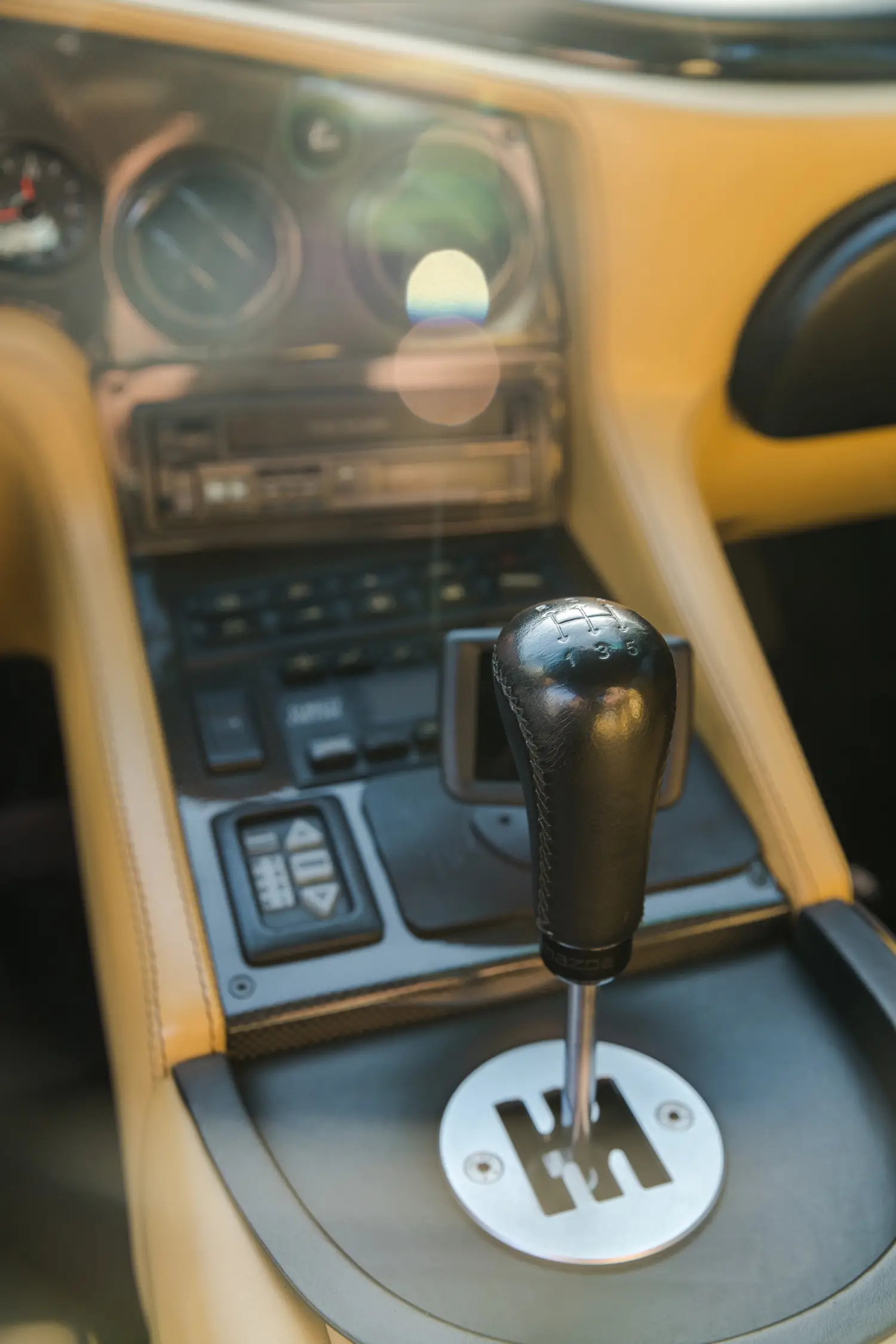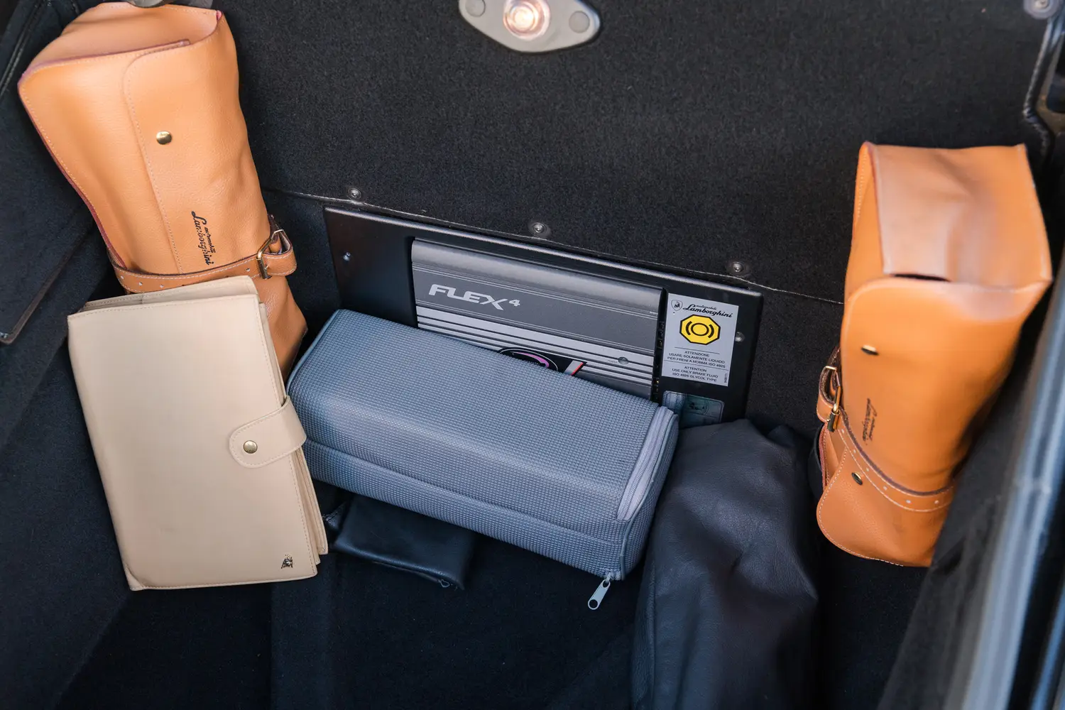 The most substantial design changes included a slightly lower windscreen, larger air intakes, new O.Z Racing wheels and most notably the engine bonnet treatment. In order for the engine heat to vent properly as well as accommodate the targa top, a redesign of the engine cover was crucial and the ingenuous method Lamborghini came up with to solve this issue was a masterful compromise which featured larger air intakes on the atop the rear wheels which were likewise increased from 17” to 18”. The roof snaps securely into place right into the top of the engine bonnet, which may be done in seconds.