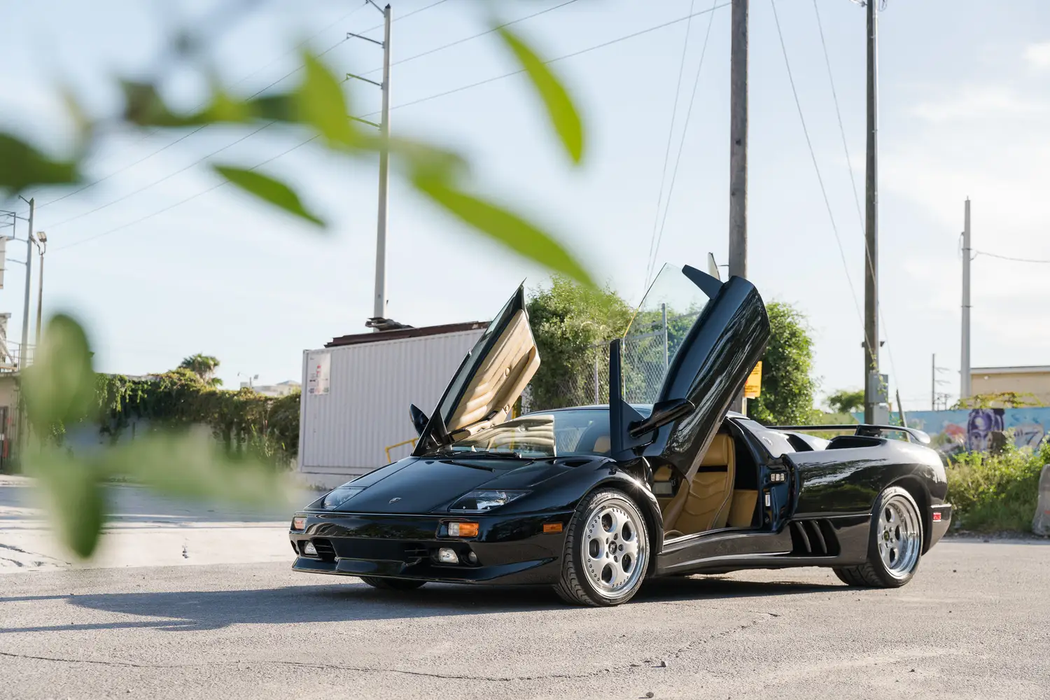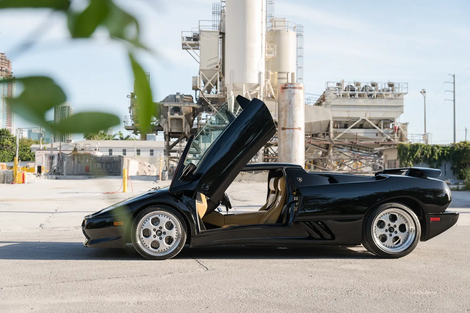 This Diablo Roaster #12348 is resplendent in Nero black with luxurious tan leather interior, one of twenty-eight produced and featuring all original paint, books, two sets of keys and only 8,242 miles.