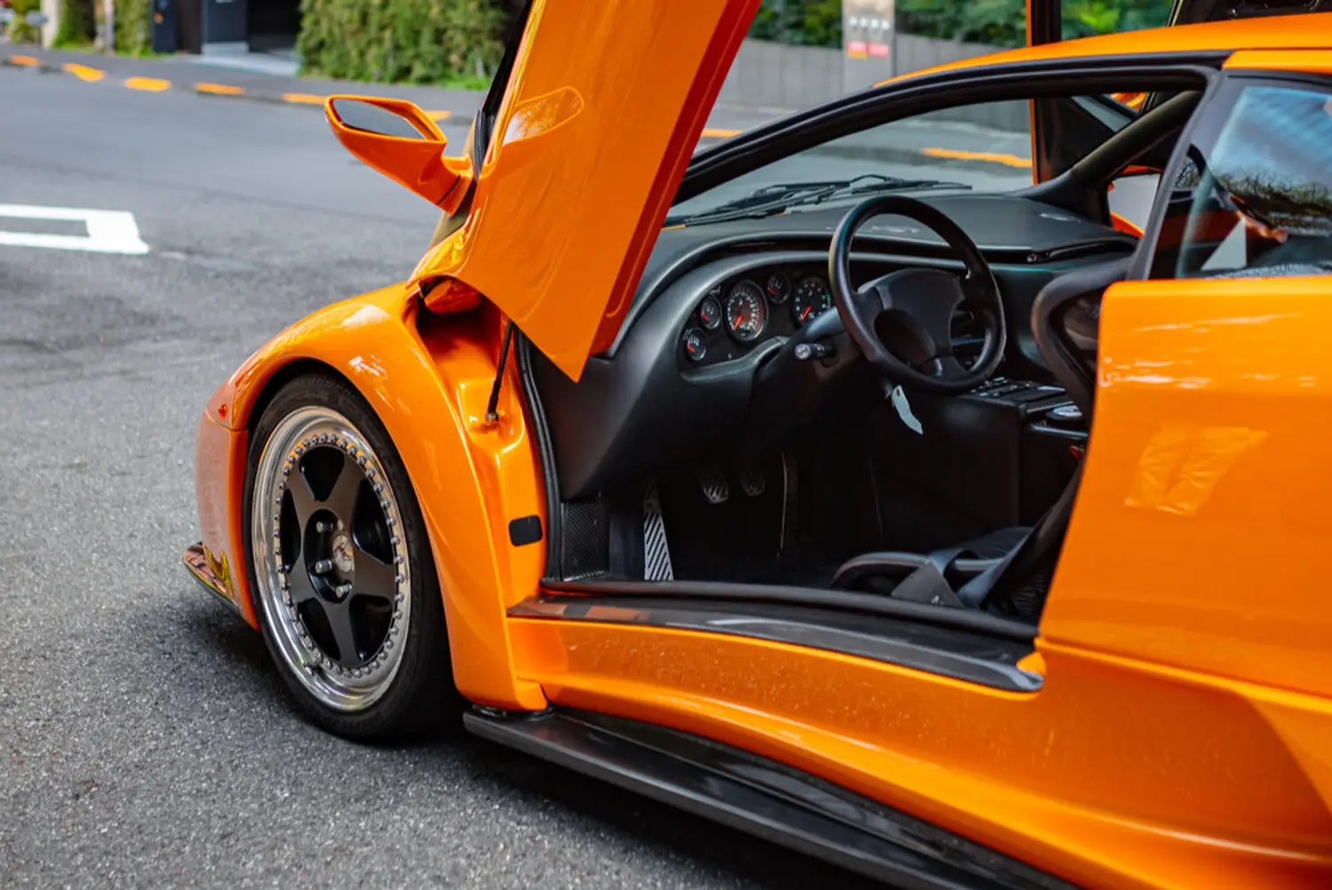 This particular Diablo GT (#2530), #60 of the 80 produced, is finished in Arancio California with a very rare full Nero leather interior. It's equipped with the GT full carbon bucket seats and sport steering wheel. Delivered new in July of 2000 to the Lamborghini franchise in Milan, Touring Auto.