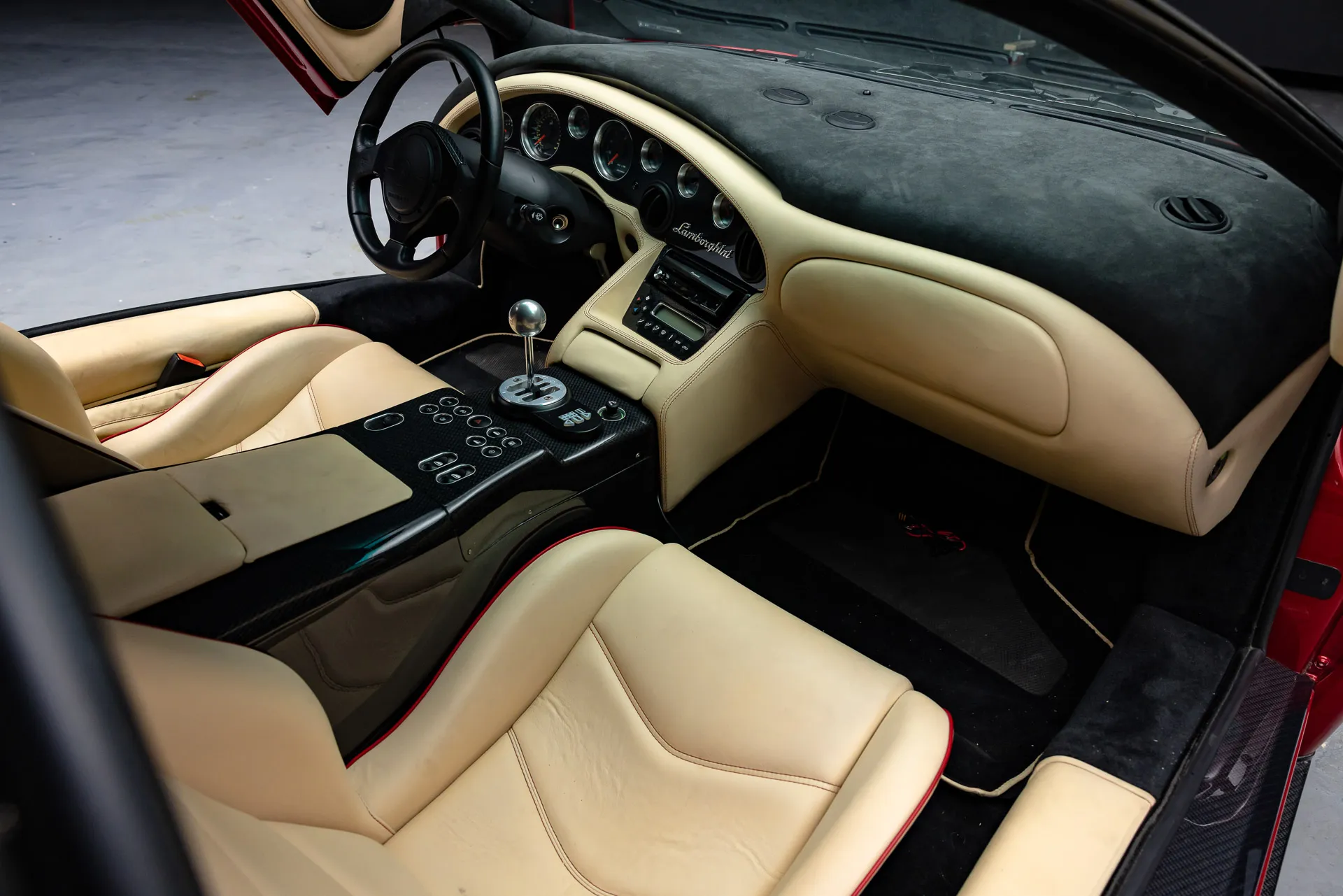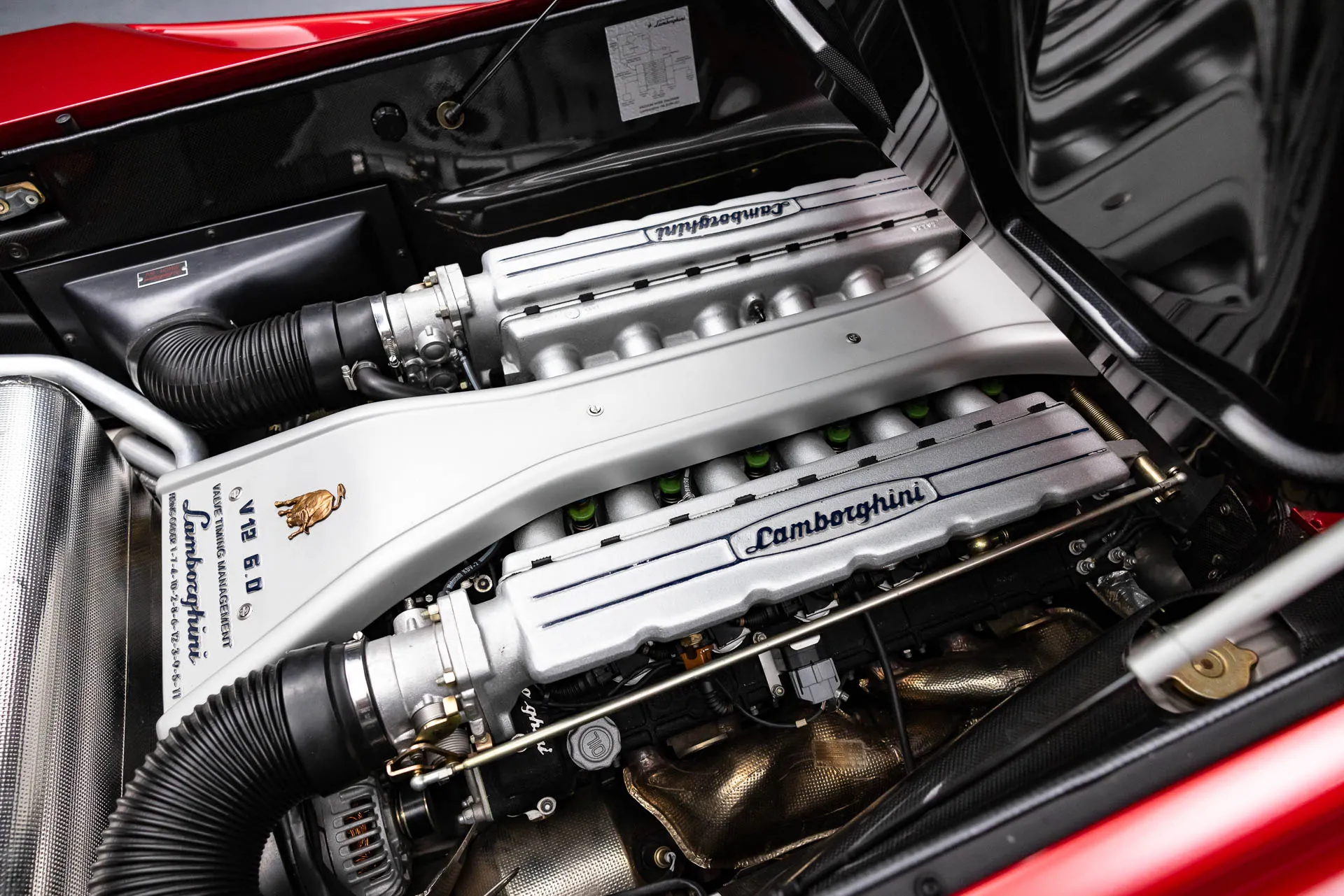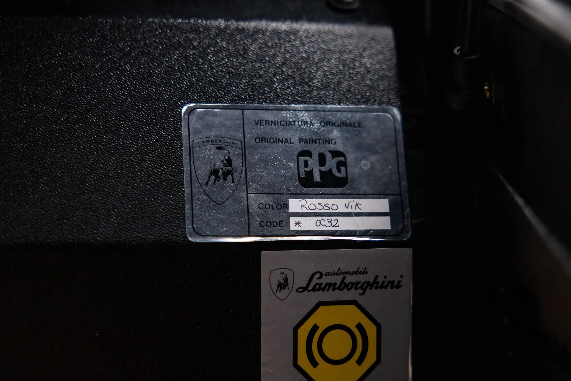 This particular car retains its original books, tools, and the factory car cover, illustrating the level of preservation and collectability associated with it. Its exceptional condition and rarity make it a standout piece in the lineage of Lamborghini supercars.
