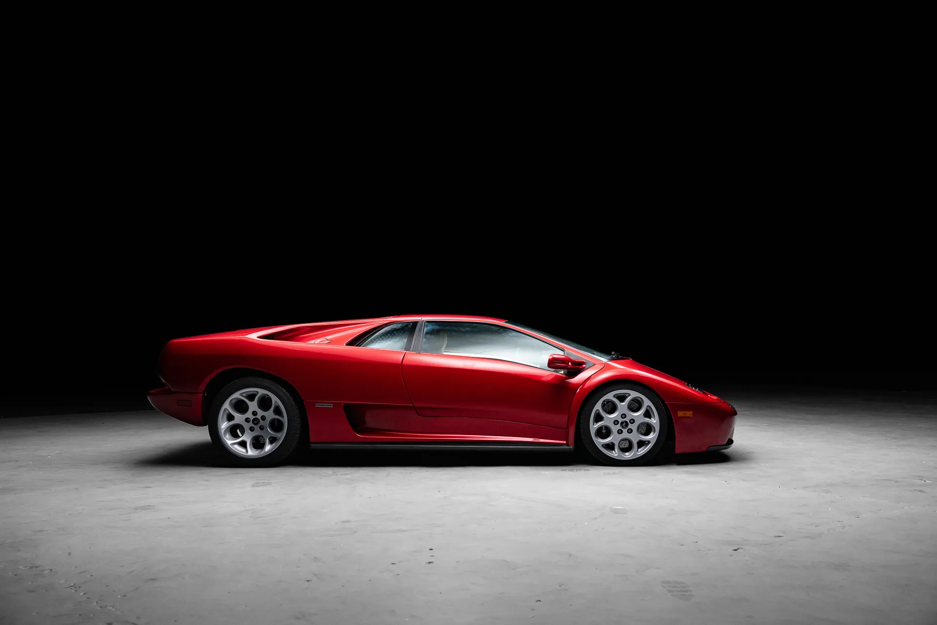 The 2001 Lamborghini Diablo 6.0, identified by chassis number ZA9DU01BX1LA12736, exemplifies rarity and meticulous care. This example is finished in Rosso Vik, a unique and striking color produced on just four units. Complementing its exterior, the interior is done in Snowcorn, contributing to its distinctive appearance. With only 7,000 miles on the odometer, this Diablo 6.0 is noted for its concours-level condition, maintained through a comprehensive major service.