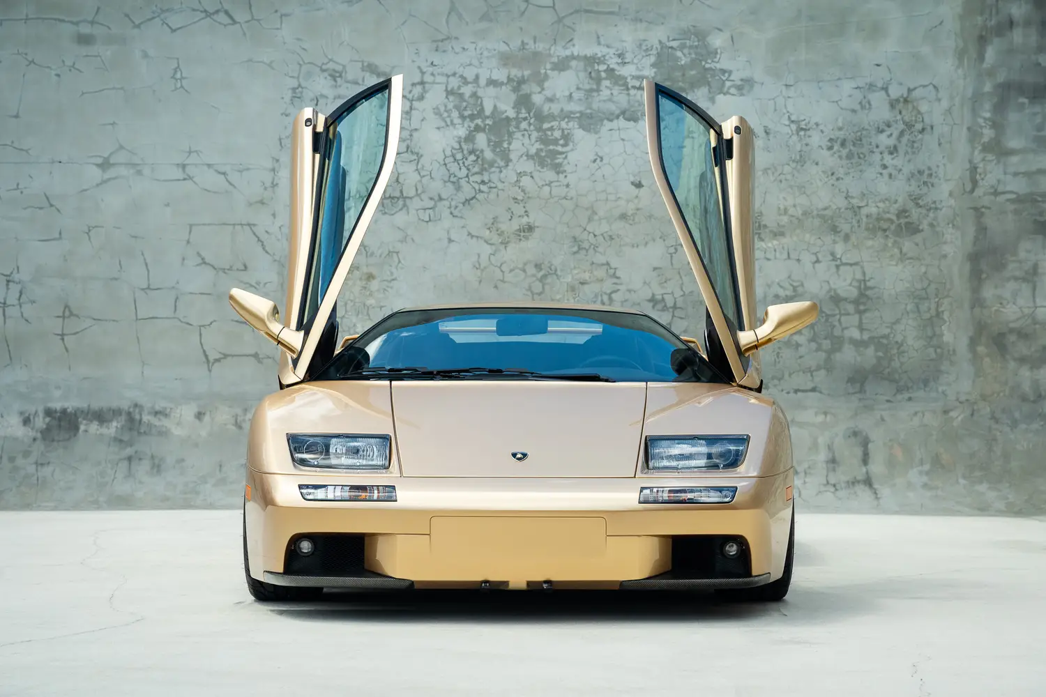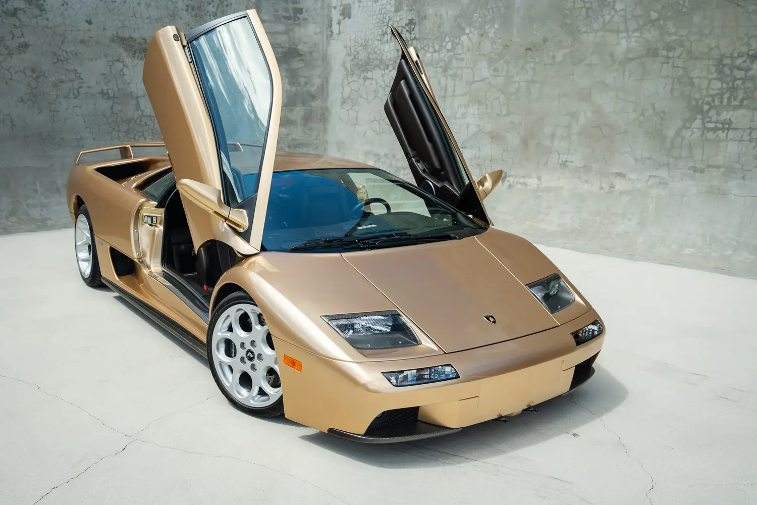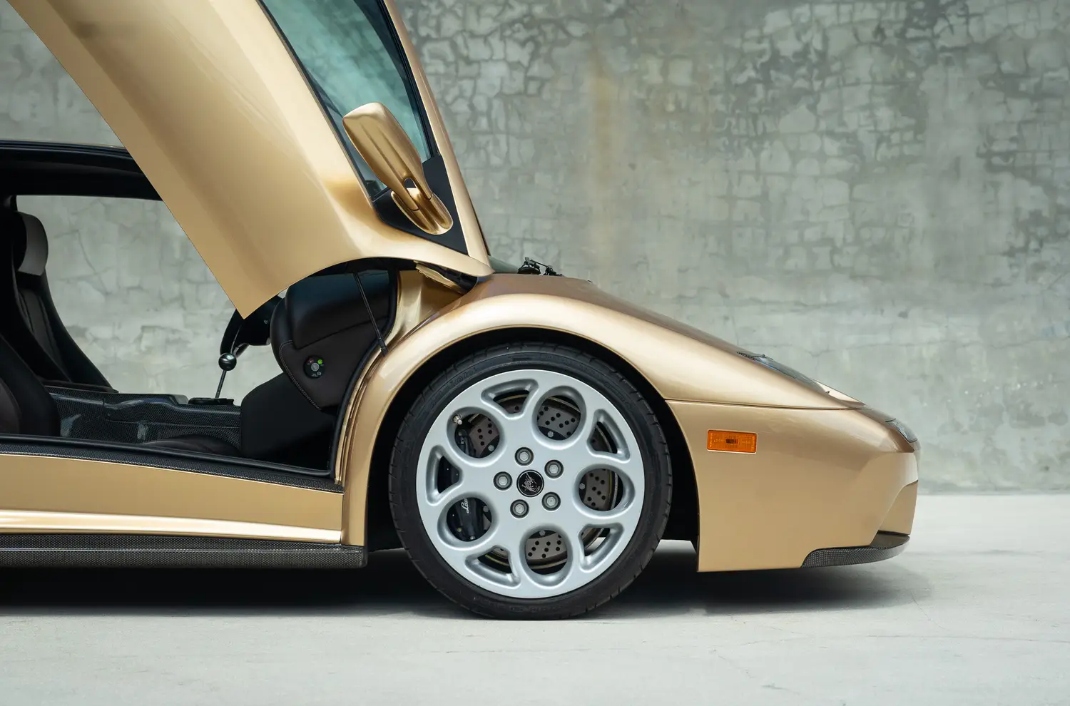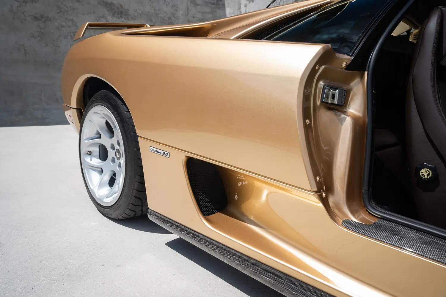 2001 Lamborghini Diablo 6.0 SE #24 finished in Oro Elios (gold) over brown perforated leather interior. Extremely rare one of only fourty-two Diablo 6.0 SE’s ever produced, and one of only twenty finished in Oro Elios.