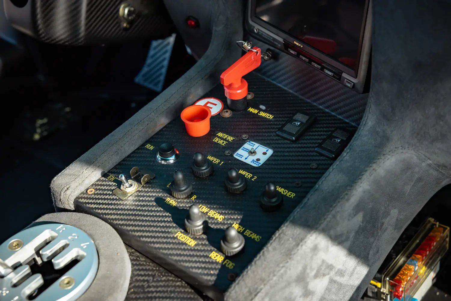 The GTR was built entirely of carbon fiber with only the roof and doors remaining metal, per the rules for rigidity and safety. Adding to the car’s racy looks, plexiglass windows with small sliding racing air inlet replaced full glass windows and providing a modicum of air circulation into the cockpit.