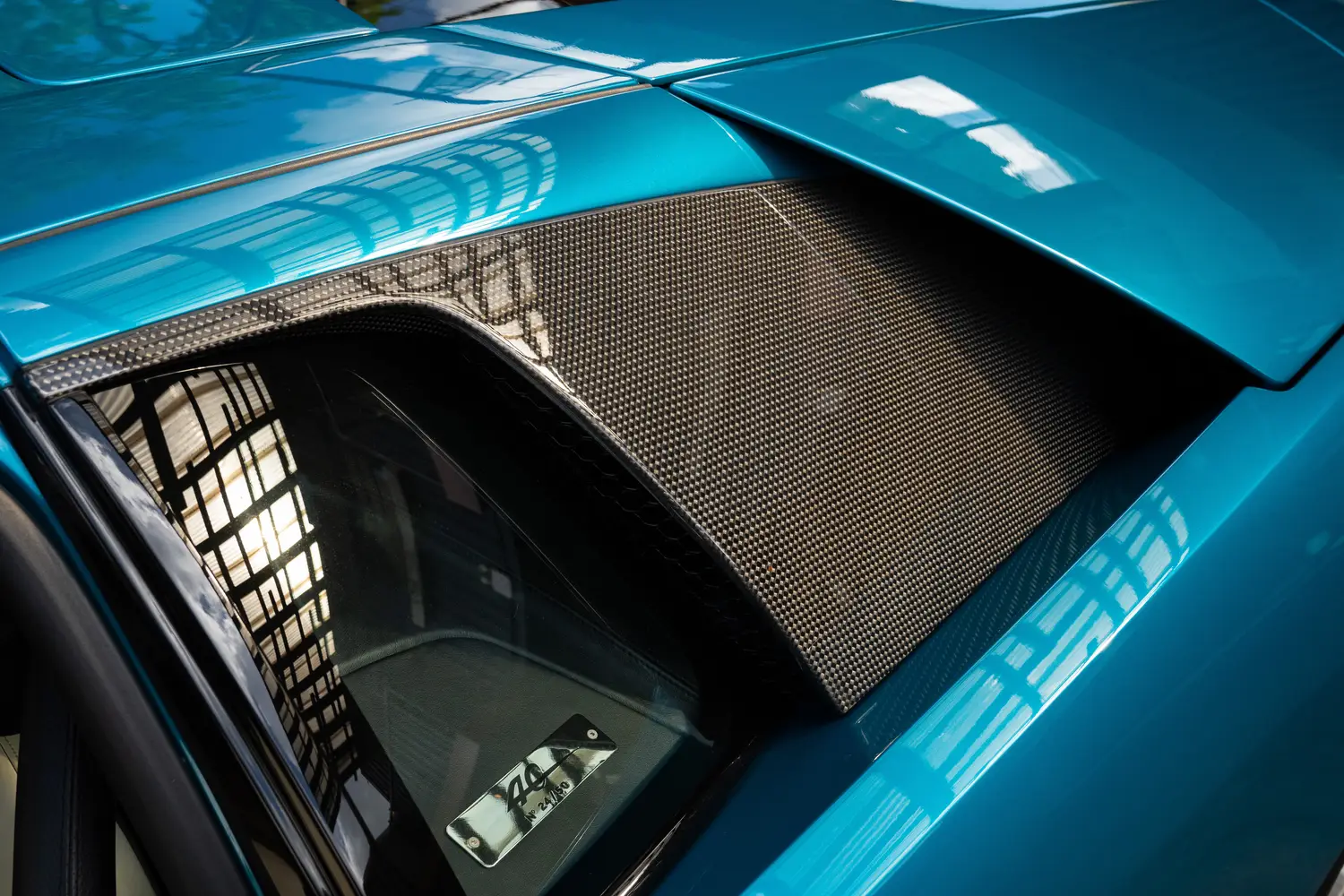 signed carbon fibre suitcase in the luggage compartment.