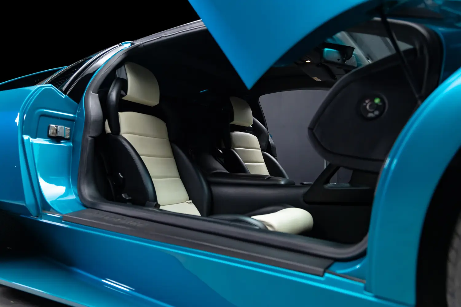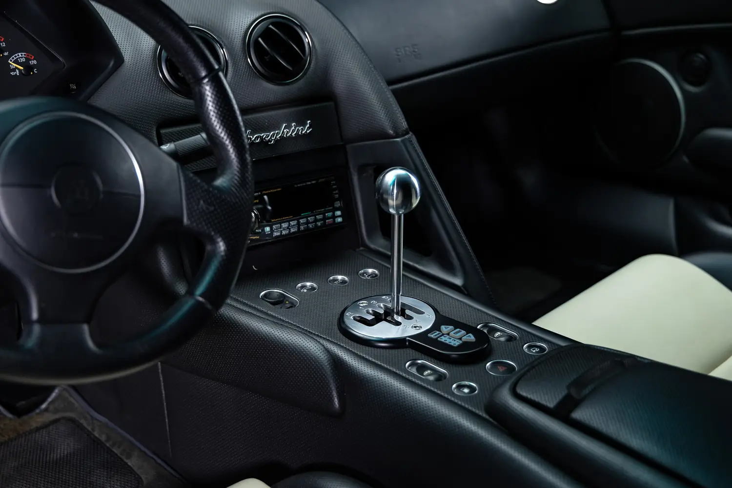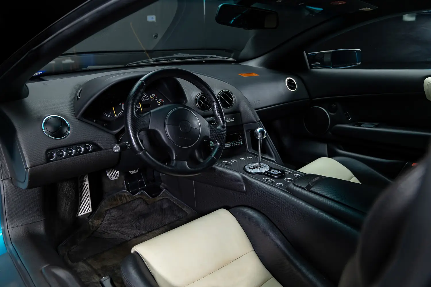 Inside, the asymmetrical cabin design is unique to the Anniversary Edition. The driver’s side is trimmed in Grigio Syrius perforated leather, while the passenger side features smooth Nero leather. The two-tone layout continues with grey-and-white leather throughout the cockpit, 40th Anniversary-branded floor mats, and an Alpine CD player. Some examples, including this one, are also equipped with satellite navigation.