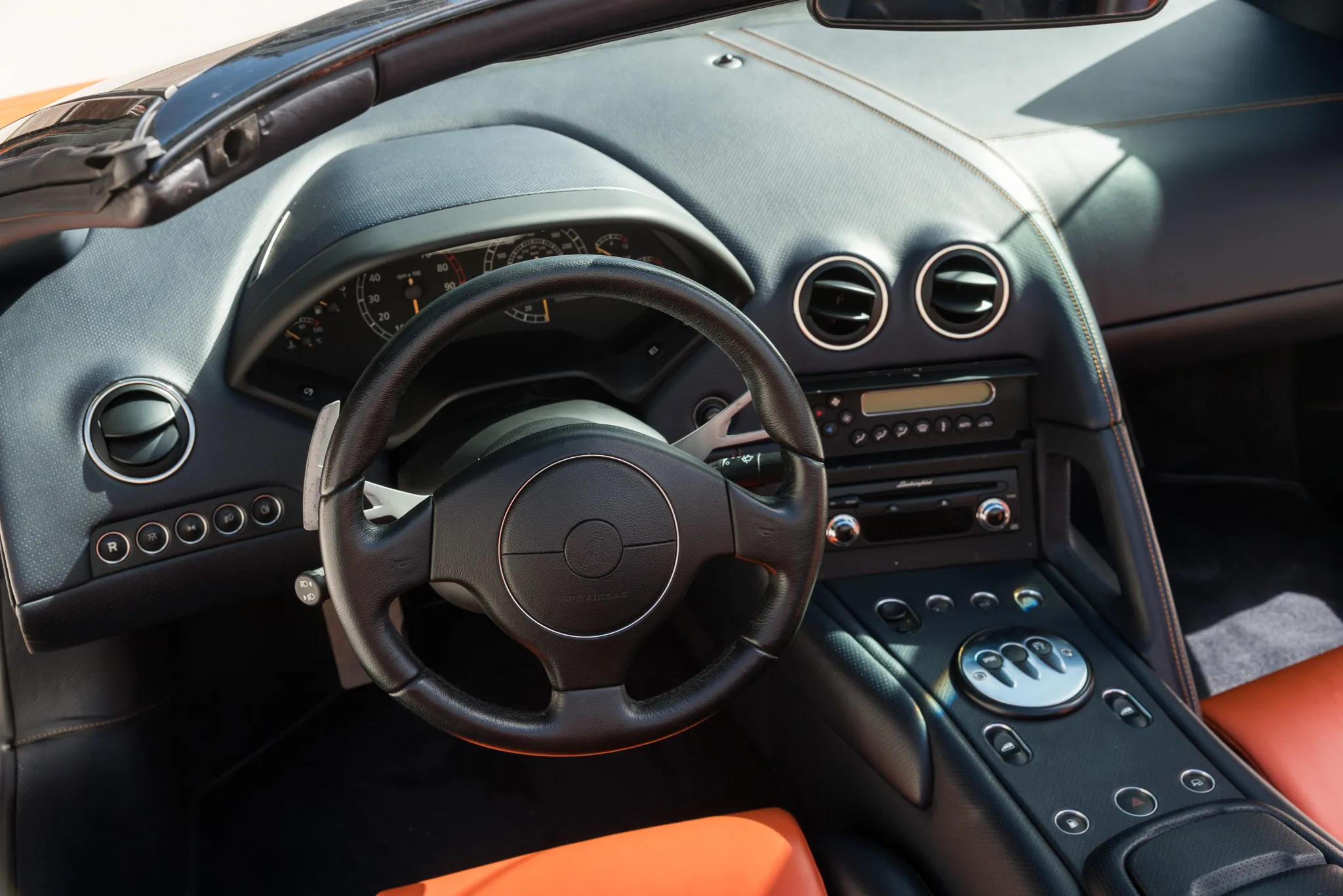 The interior is a simple layout, nothing too over the top but a very modern update from the Diablo with a comfortable design which envelopes driver and passenger in full leather comfort in a very simple and clean look with all of the major controls and gated shift lever is integrated into the central console.