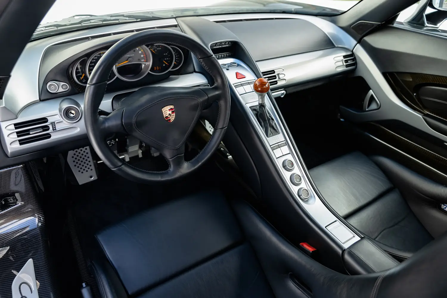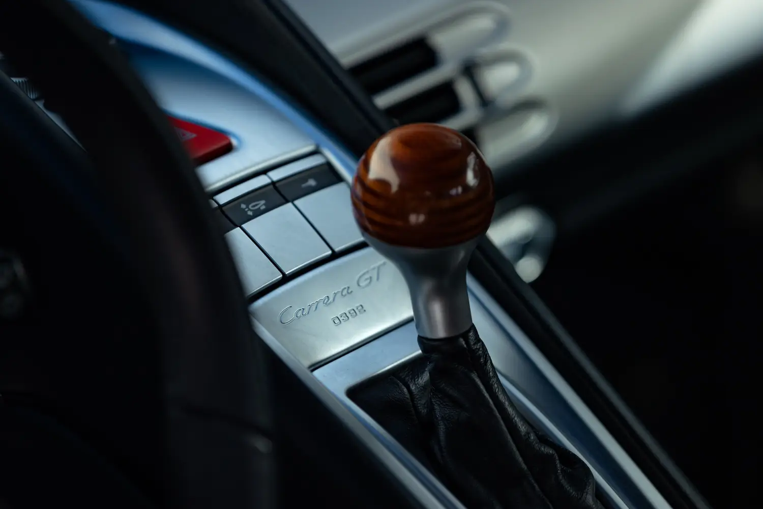 Compared to the 911 models, the Carrera GT is a long car with full aerodynamic treatment around an all-carbon fiber monocoque with the subframe produced by Italian company ATR Composites Group. All Carrera GTs feature a traditional six-speed manual transmission with homage to the Porsche 917 polished beach wood shift knob.