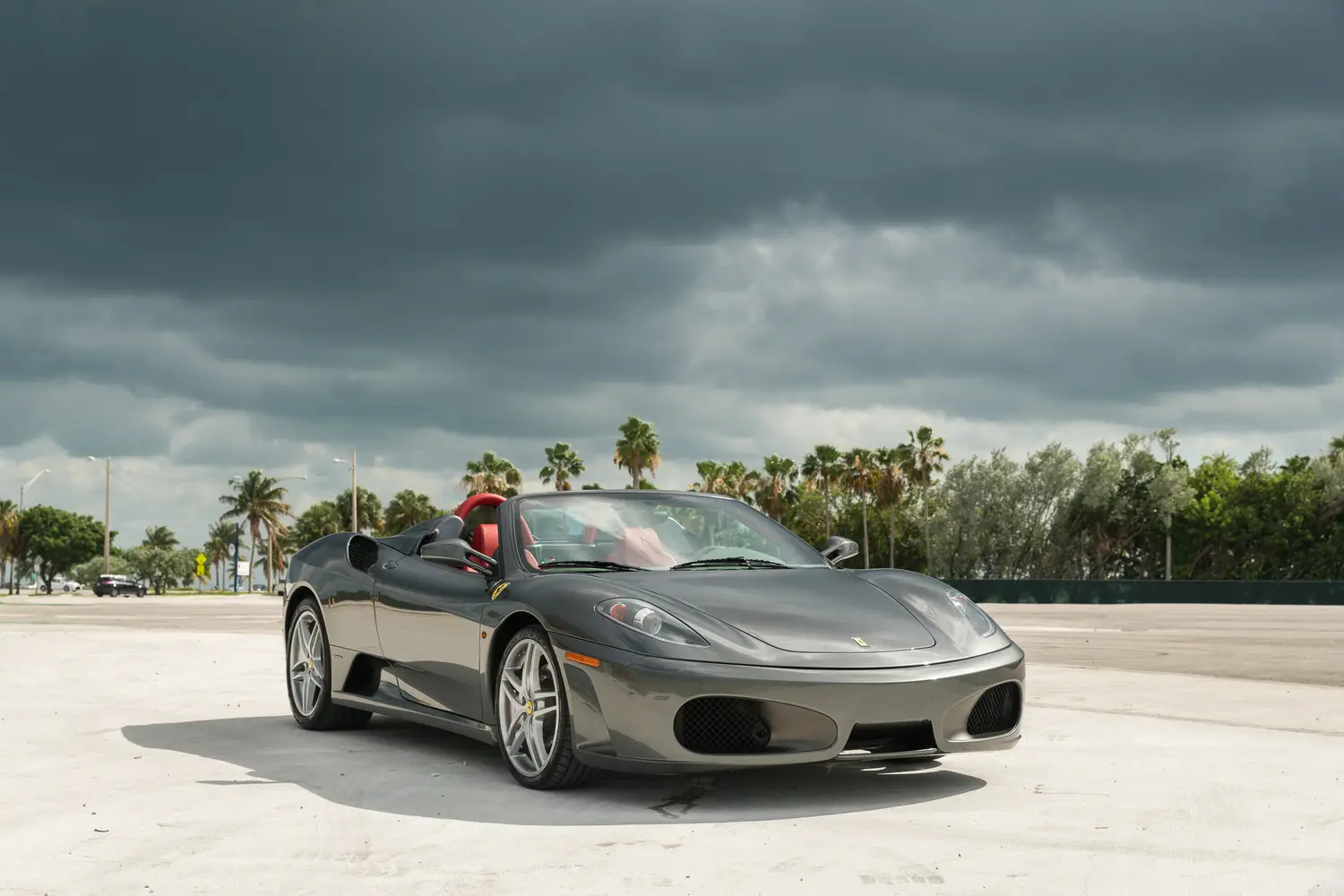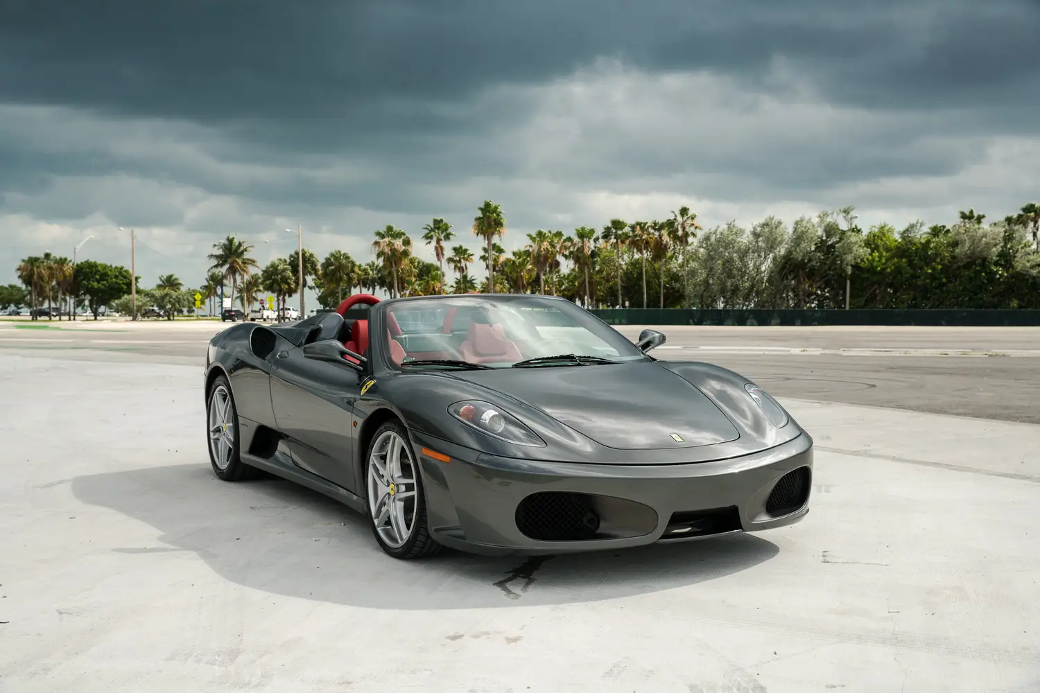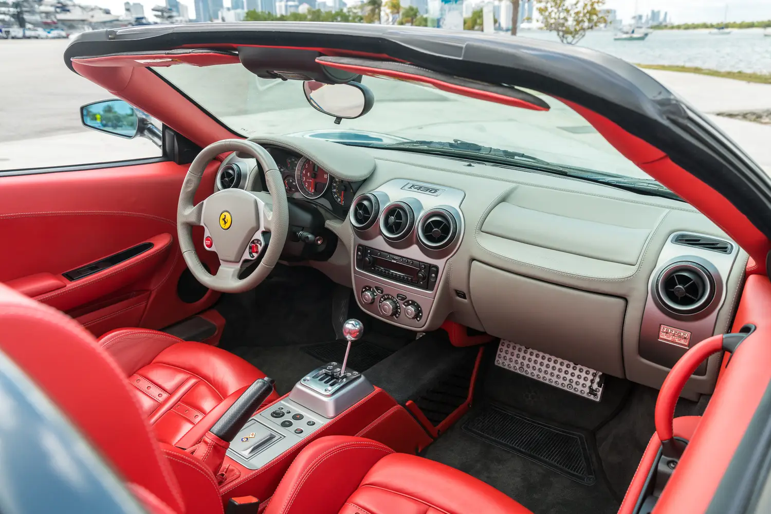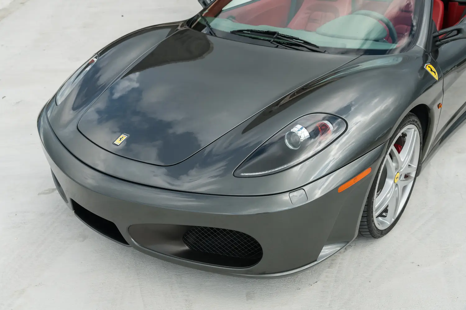 This 2006 Ferrari F430 Spider (#1908) is a four owner example,comes in attractive Grigio Silverstone (dark silver) with bespoke red leather interior with luce grigio dash, highly desirable 6-speed manual transmission, Ferrari shields and only 3,000 miles.