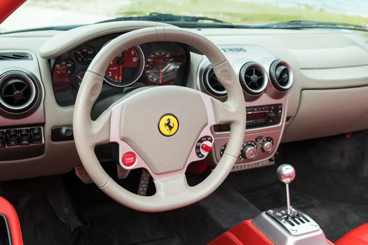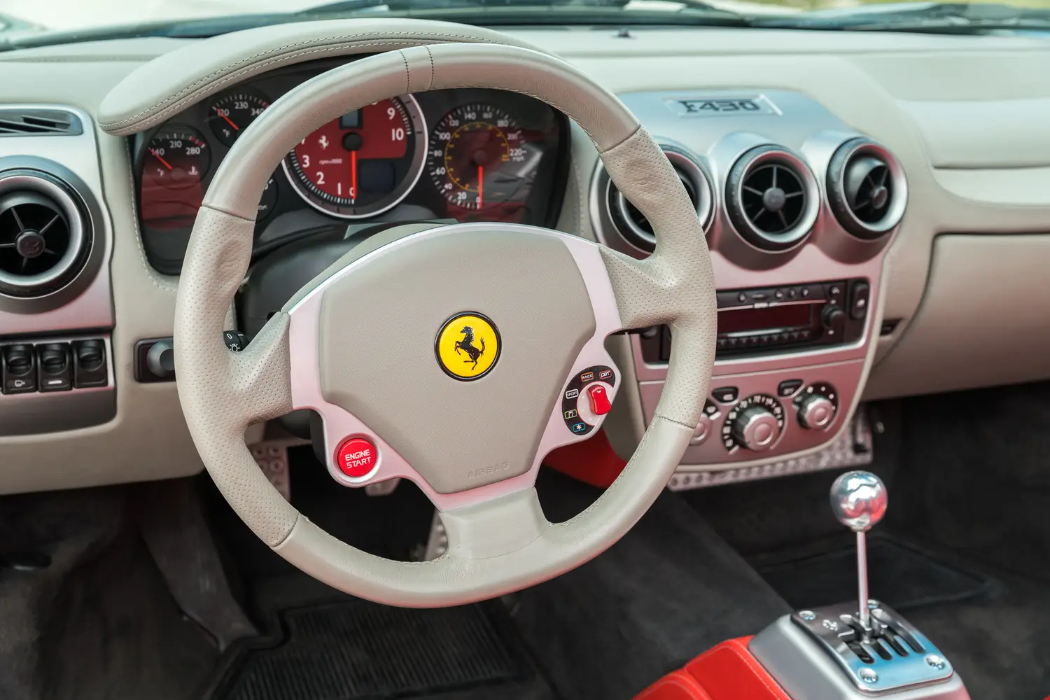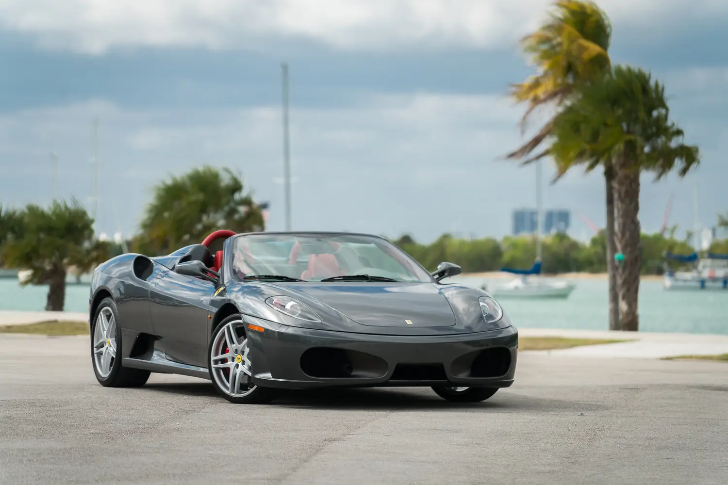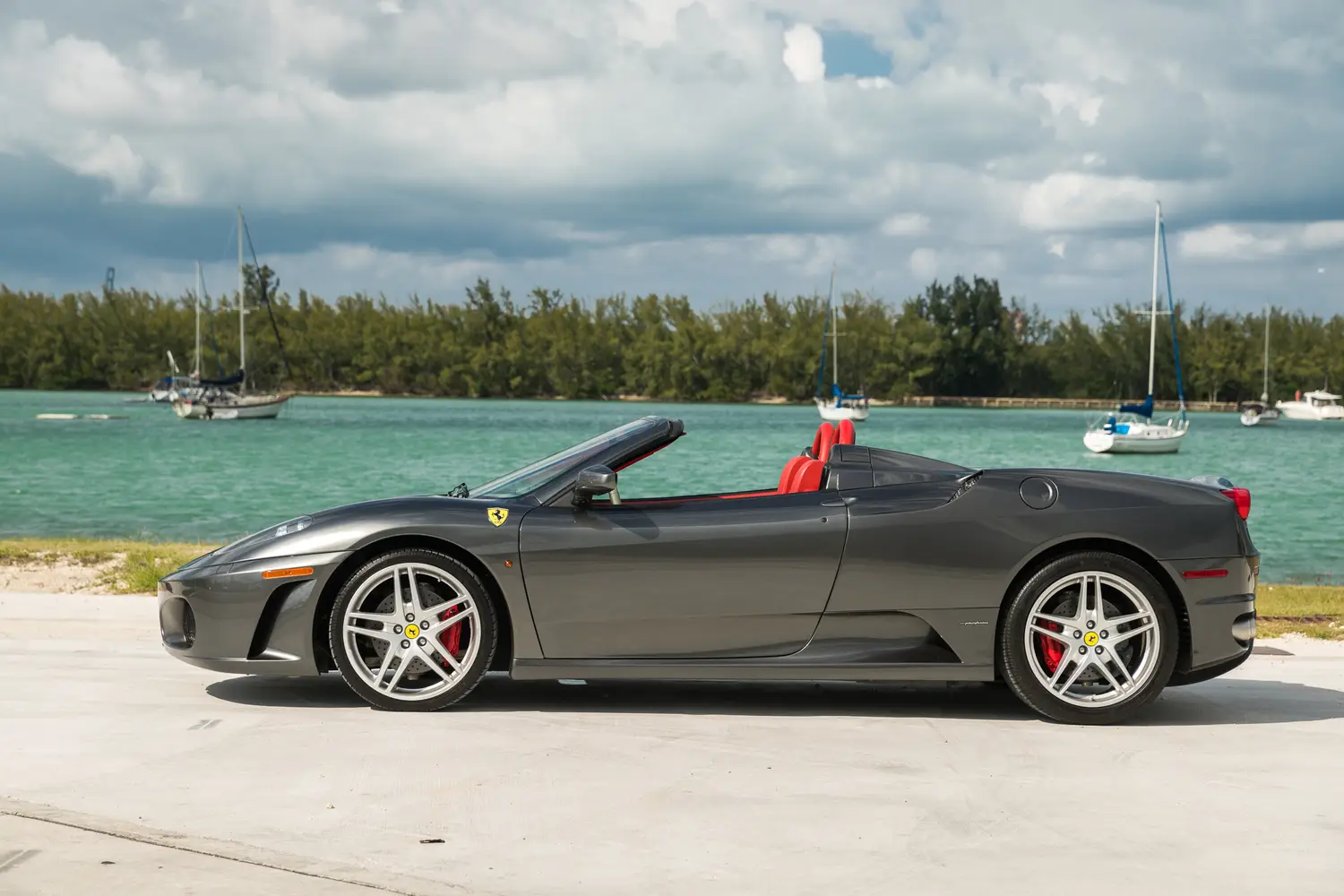 This 2006 Ferrari F430 Spider (#1908) is a four owner example,comes in attractive Grigio Silverstone (dark silver) with bespoke red leather interior with luce grigio dash, highly desirable 6-speed manual transmission, Ferrari shields and only 3,000 miles.