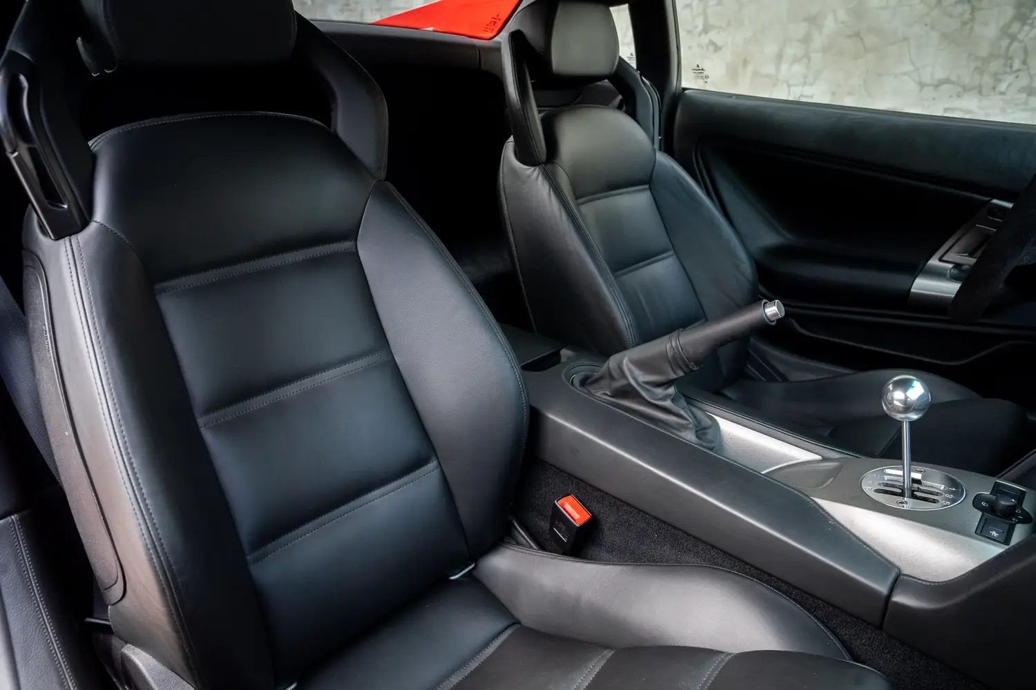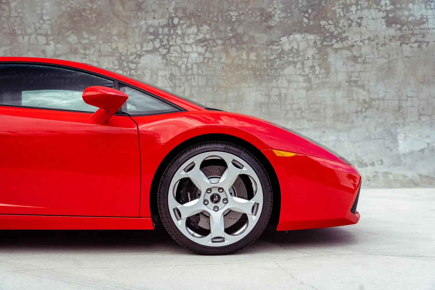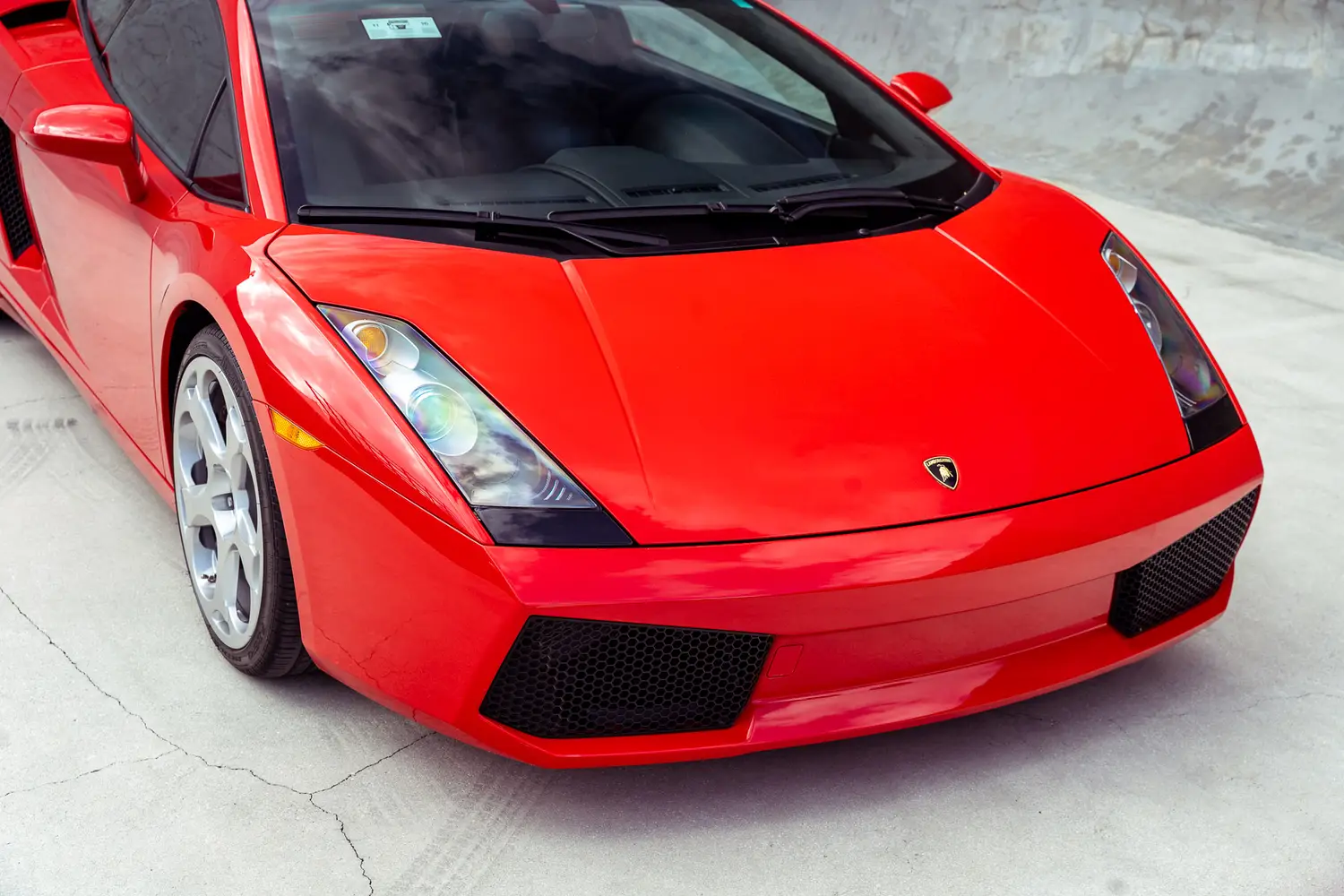 This 2006 Lamborghini Gallardo (#2937) is resplendent in Rosso with black leather interior, showing only 425 original miles on the odometer and rare 6-speed manual transmission.
