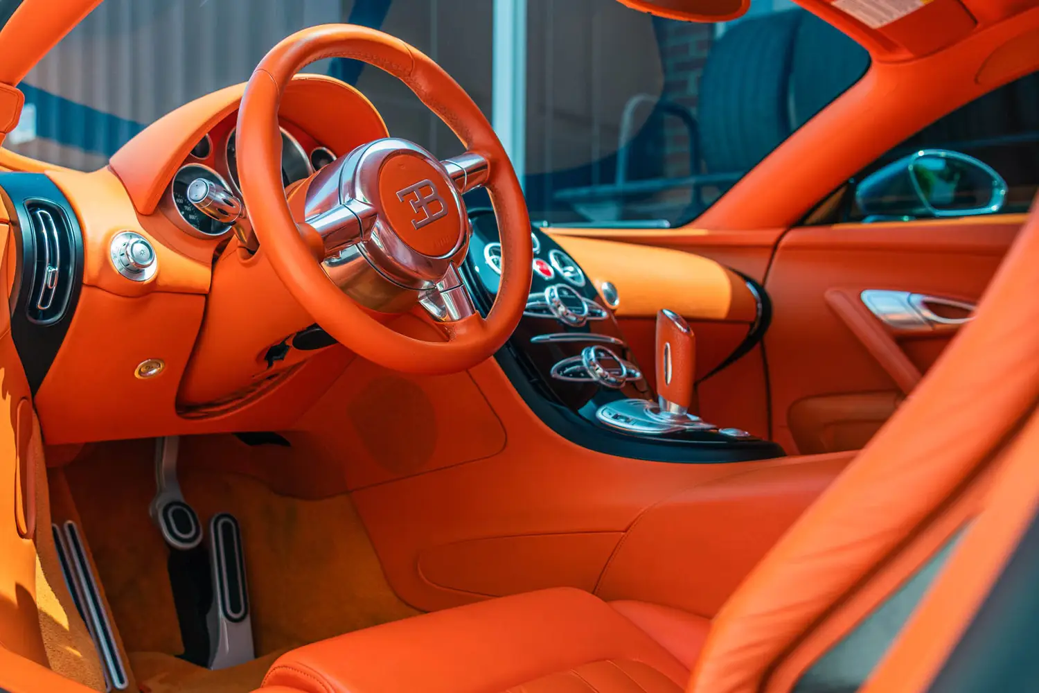 This 2008 Bugatti Veyron 16.4 Sang Noir is one of just two examples delivered to the U.S., and the only one of the pair finished with an orange interior. It is Sang Noir #1, the original press car used by Bugatti to unveil the limited series.