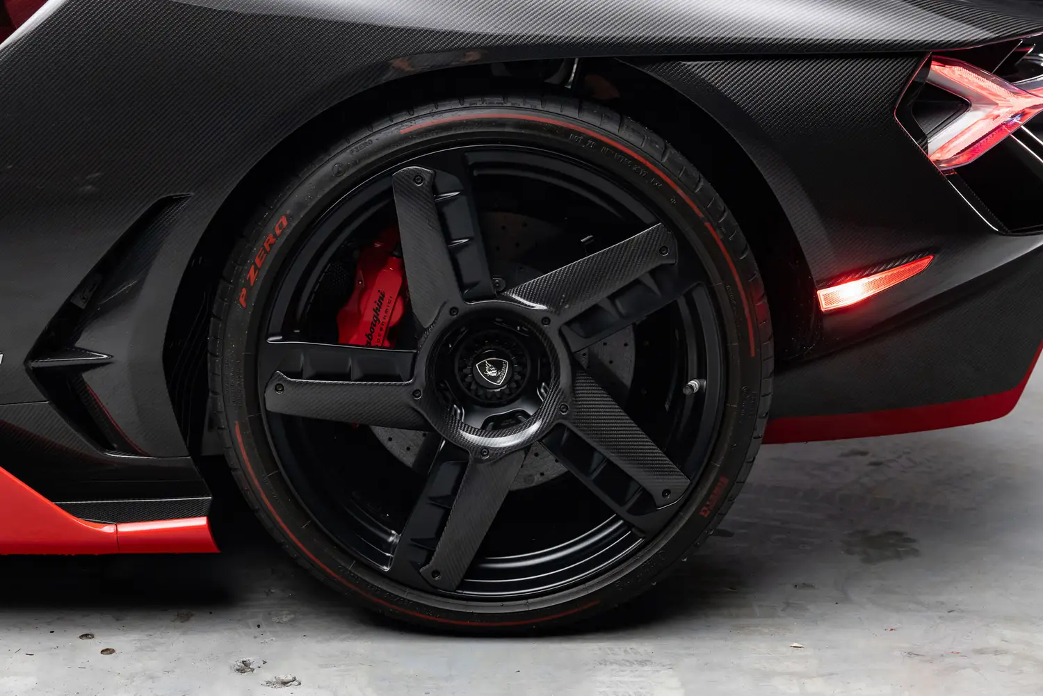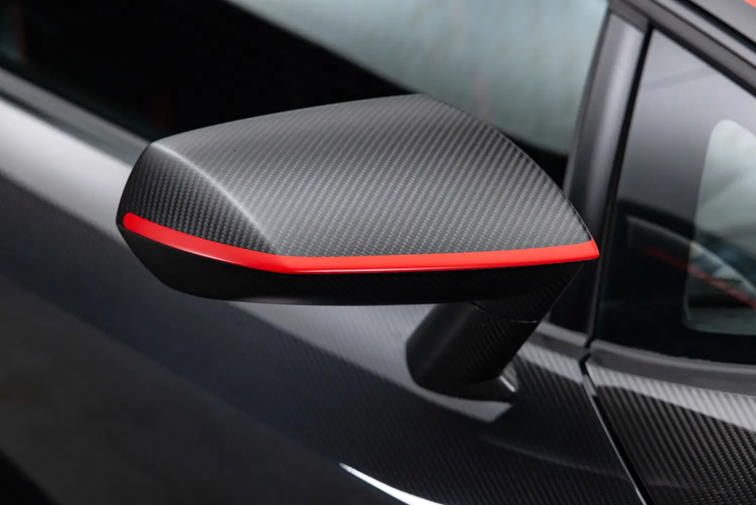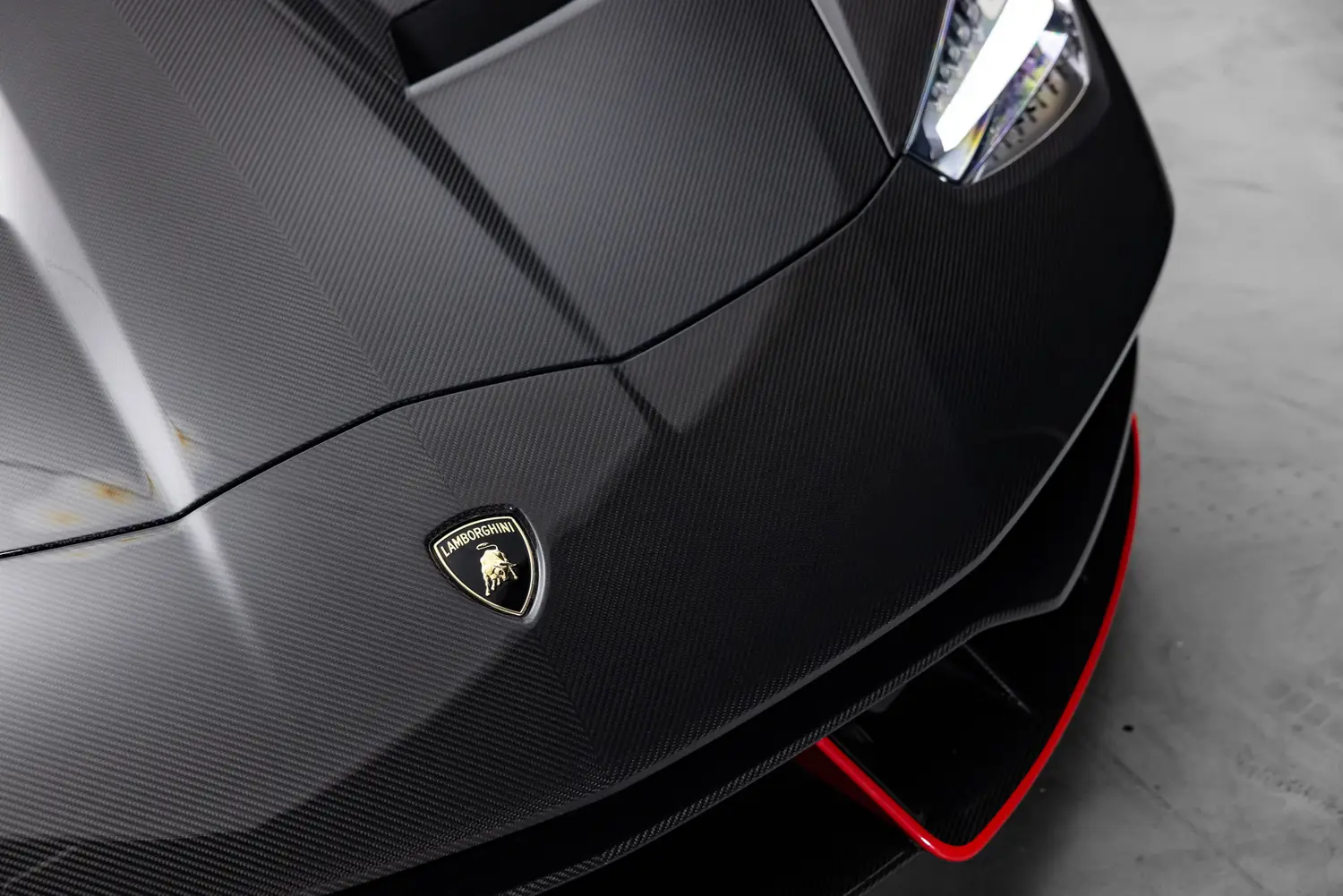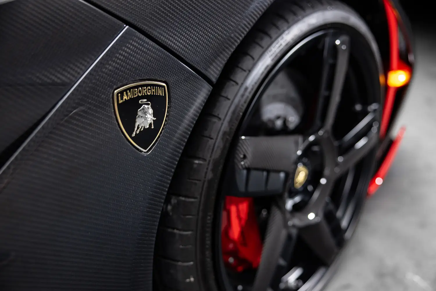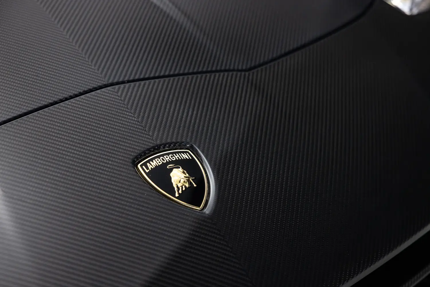 Chassis Number HLA06089 is this US market Gloss Carbon Fiber car with Nero Ade Leather interior displaying only 241 miles still wearing its correct redline Pirelli tires